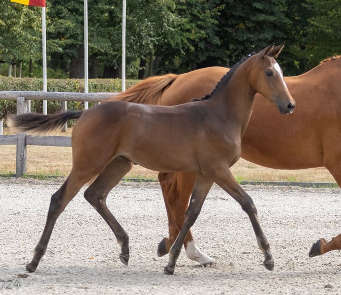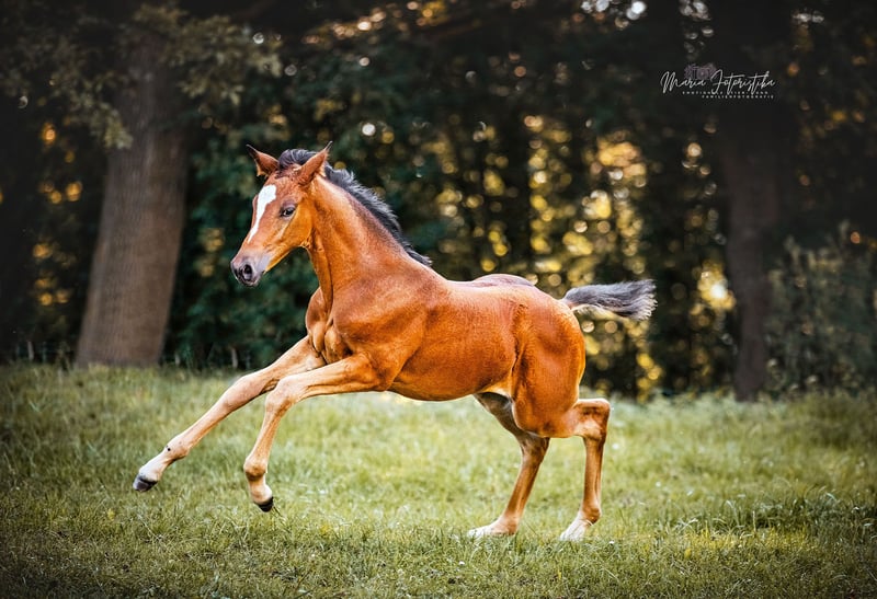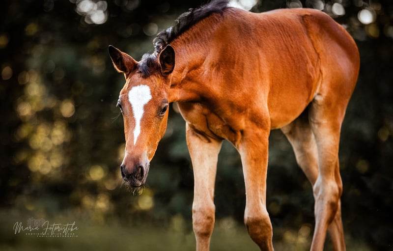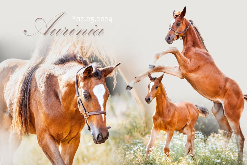 Auf diesem Weg sucht Aurinia ihren neuen Lieblingsmenschen. Sie ist gut erzogen, sozialisiert, verschmust, neugierig, unerschrocken und neugierig, ist schmiede- und verladesicher, kennt Bauernhoftiere und -maschinen. Zur Fohlenschau wurde sie hoch bewertet und zum Championat hoch prämiert. Durch ihre überdurchschnittlichen Bewegungen sowie einem Mutterstamm, aus dem viele sehr gute Springpferde hervorgegangen sind, ist sie für alle Sparten der Reiterei sehr interessant. Immer PLATZ VOR PREIS! "In einem vorzüglichen Haltungszustand und in tollem, modernem Seitenbild präsentiert sich die ansprechende Aurinia. Im Wonnemonat Mai geboren, weiß Sie durch beinahe tadellosen Typ und Körper sowie Fundament zu überzeugen. Abgerundet wird das Auftreten dieses formidablen Fohlens durch überzeugende Grundgangarten, was sie letztendlich zu einem hoch bewerteten Championatsfohlen gemacht hat. Der Vater Saint Cyr zählt zu den letzten Nachkommen der Trakehner Legende Kostolany, der wiederum dieser Rasse seinen absoluten Leistungsstempel aufgedrückt hat. Saint Cyr konnte bereits eine Reihe von Prämienstuten stellen. Die Trakehner Vorzeige-Zuchtstätten Hämelschenburg und die sächsische Gestütsverwaltung aus Graditz, werden hier vortrefflich miteinander kombiniert, über den hervorragenden Alraune-Stamm aus Trakehnen mit seinen Töchtern den Elitestuten Almut, Altea und Altena. Vater Berlusconi rundet das auf allen Ebenen vielseitige und sportliche Pedigree ab." (Kommentar des Trakehner Verbandes anläßlich des Fohlenchampionates)