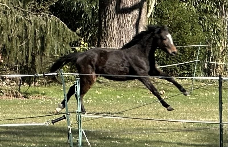 Abendglöckchen Beschreibung Sie bereitet große Freude, jeden Tag Mit ihrem dritten Geburtstag beschenkt uns Abendglöckchen weiterhin mit ihrer absoluten Gesundheit und Korrektheit. Sie ist jetzt natürlich deutlich im Wachstum, dennoch ist schon deutlich zu erkennen, zu welchem hervorragendem Sportpferd sie gerade heranwächst. In ihrem Wesen ist sie dem Menschen in ganz besonderem Maße zugewandt. Sie liebt es, Aufgaben zu bekommen, denkt mit, ist super schmusig und strahlt vor Lebensfreude. Sie ist ihrem Alter entsprechend gerade noch nicht angeritten, kann aber alles, was vorab wichtig ist. An der Longe zeigt sie auf Stimmkommando Schritt, Trab, Galopp. Sie lässt sich am Halfter parieren und schicken, in harmonischen Übergängen, aber immer mit leichtfüßigen Vorwärts. Im Umgang im Stall hat sie keine Unarten. Sie kennt den Hufschmied und benimmt sich tadellos. Ebenso selbstverständlich und unaufgeregt geht sie auf den Transporter. Sie geht an der Hand immer vertrauensvoll, auch bei Spaziergängen an der Straße entlang.