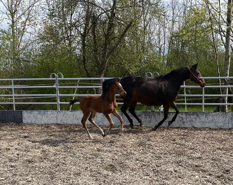 Puledra molto tipica e orientata alle persone. Il cutie si muove liberamente e trasportato e ha una base corretta e una bella linea superiore. Secondo il suo pedigree, questa cavalla mezzosangue è molto interessante sia per lo sport che per l'allevamento!