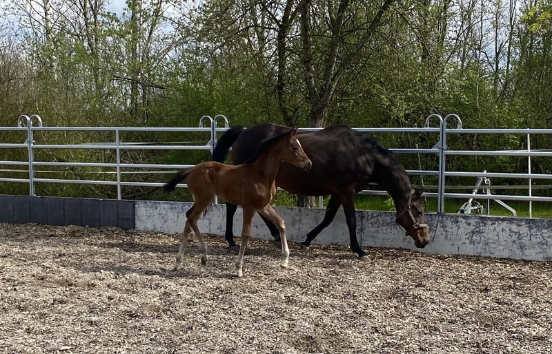 Sehr typvolle und menschenbezogene Jungstute. Sie bewegt sich locker und getragen und verfügt über ein korrektes Fundament und eine schöne Oberlinie. Abstammungsgemäß ist diese Halbblutstute sowohl für den Sport als auch für die Zucht höchst interessant!