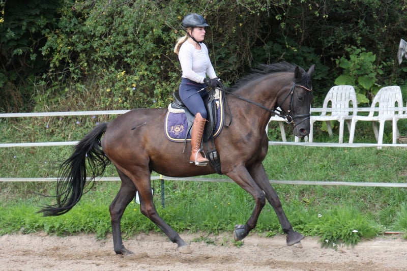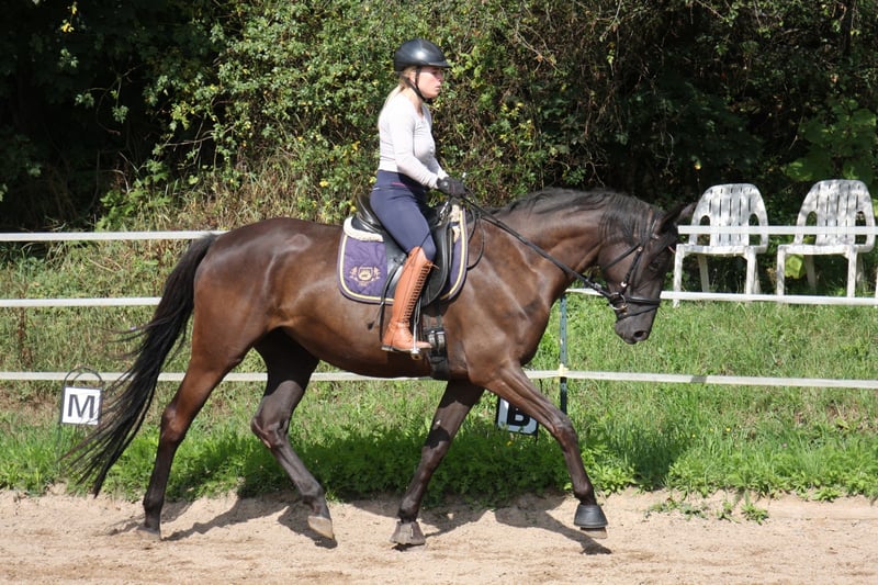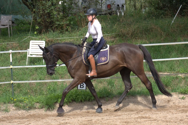 Te koop: een prachtige Trakehner merrie met een uitstekende houding en veel potentieel. Ze is ingereden en toont zich al zeer braaf en coöperatief onder het zadel. Deze merrie is zowel voor ervaren ruiters als voor ruiters in opleiding een uitstekende keuze. Kenmerken: Ras: Trakehner Kleur: Zwart Leeftijd: 4 Schofthoogte: momenteel ongeveer 165 cm Opleidingsniveau: ingereden (opleidingsbegin mei 2025), extreem braaf in de omgang Karakter: Zeer rustig, mensgericht en vriendelijk Schoen- en laadvriendelijk – geen probleem bij de hoefsmid of in de trailer Gezondheid: regelmatige veterinaire zorg, röntgenfoto's van april 2025 zonder bevindingen - helaas heeft Fiona de gewoonte om te koppen. Dit is geen gezondheidsbeperking, maar ik wil dit hier benadrukken omdat het een vervelende gewoonte is en ook de oorzaak van de lage prijs. Geschiktheid: Ideaal voor de vrijetijdsbesteding of sport, zowel voor jonge ruiters vanwege haar 1A karakter als voor ervaren ruiters, aangezien ze genoeg bewegingspotentieel voor de sport biedt. Fiona is altijd kalm, goedmoedig en altijd coöperatief, of ze nu in de stal of op de wei met andere paarden is, en ook in de omgang met mensen, zowel op als naast het zadel. Prijs: 12.500€ Bieden Video onder het zadel kan op verzoek worden toegestuurd! Voor meer informatie of een bezichtiging kunt u gerust contact met mij opnemen. Ik kijk uit naar uw bericht.