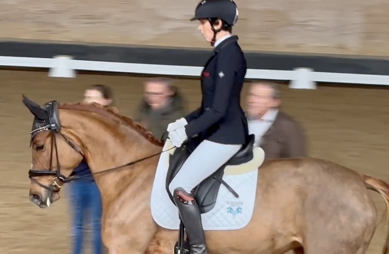 Il 9 novembre 2025, Hailey ha partecipato per la prima volta a una prova di equitazione per cavalli da dressage. (vedi il video attuale). Hailey è una splendida e nobile cavalla rossa. È facile da montare (e ben seduta), socievole e tranquilla. Cerca il contatto con le persone (è una cavalla affettuosa) e si comporta amichevolmente con gli altri cavalli. Rimane calma, ad esempio, quando viene montata da sola nella scuderia o nel paddock esterno – anche quando altri cavalli vengono lavorati contemporaneamente. Tra maggio e giugno 2024 è stata messa in longe e abituata alla sella e al cavaliere. Successivamente, è tornata in stalla e al pascolo per un anno, poiché nata tardi. Ad agosto/settembre 2025, Hailey ha partecipato alla prova di prestazione per puledre presso il Verband Bayerischer Züchter a Monaco-Riem. Ha ottenuto un punteggio di 7,9 nella parte dedicata alla dressage! Valutazioni della prova di selezione, tra le altre: Carattere 10,0; Temperamento 9,0; Disponibilità al lavoro 9,5; Costituzione 9,0 Stato di salute = in perfetta forma. Raggi X del 26/08/2025: molto buoni, senza riscontrare anomalie! Linee di sangue di Hailey: Padre: P.H. Karim Dorè – ha vinto la classe M di dressage all’età di 6 anni. (vedi l’immagine allegata – stallone rossonero). Inoltre, il suo pedigree paterno include i cavalli da Grand Prix E.H. Imperio ed E.H. Insterburg – i due Trakehner “stelle” più valutati nel 2025, rispettivamente al primo e secondo posto. Madre: St.Pr. e Pr.St. Hetidze v.H. – ha vinto la classe M di dressage. Addestrata fino a S-Dressage, purtroppo si è infortunata, diventando poi una cavalla da riproduzione di successo. (vedi immagine allegata – cavalla baia). La sorella maggiore di Hailey è la vincitrice di S-Dressage, St.Pr. e Pr.St. Hadiya, da Grand Prix H. Schwarzgold e dalla stessa madre, St.Pr. e Pr.St. Hetidze v.H. Hailey può essere provata in sella in qualsiasi momento. Per un provino di monta presso l’impianto di Waakirchen, si prega di contattare e concordare un appuntamento con l’istruttrice e amazzone Kathrin Reisinger. Cellulare: 0173 2732008.