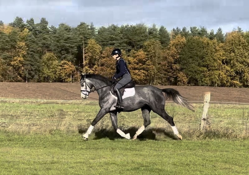 This mare truly lives up to her name! "All You Need" (Alli) has everything one could wish for in a versatile competition horse. She is brave and confident across the terrain, yet elegant and easy to ride in the arena. At just four years old, she already shows great promise as a partner for a young rider or a petite adult looking for a trustworthy mount for the future. Alli was gradually and correctly introduced to riding and began work under saddle in March. She has demonstrated genuine talent for the sport and learns quickly. Alli trains regularly in the field and approaches every type of obstacle with courage. Although she has not yet competed, she participated in a training camp for young Trakehner horses and adapted well to the new environment. Alli has no health issues, and her X-rays from May were unremarkable. She is well-behaved when farrier and shearing appointments are due.