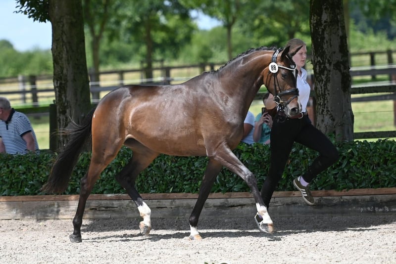 In Karissima is a premium mare in the Trakehner breeding program. Her dam E.St. In Flamme has already produced the licensed In Versuchung and the S-successful In Schönheit. The powerful Italia family (O15A) has produced numerous licensed stallions, successful sport horses and highly decorated broodmares. Through her multiple S*-winning sire E.H. Kasimir and the other sires Likoto xx, Kennedy and Onassis, she offers highly interesting performance blood and a genetic alternative to the genetics currently widespread in Trakehner breeding. The mare is only for sale because of further offspring.
