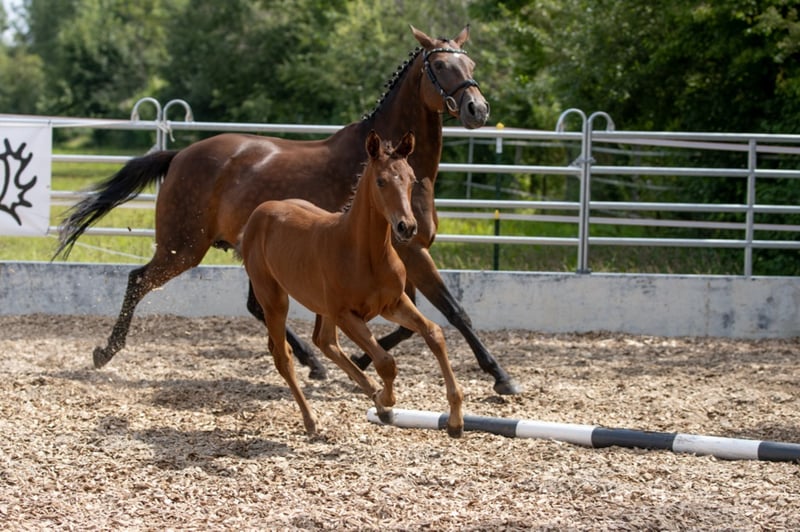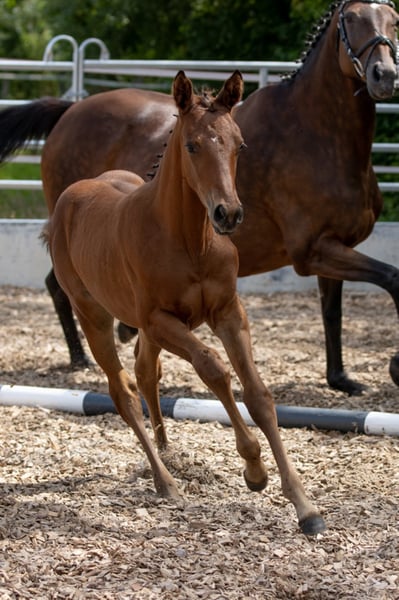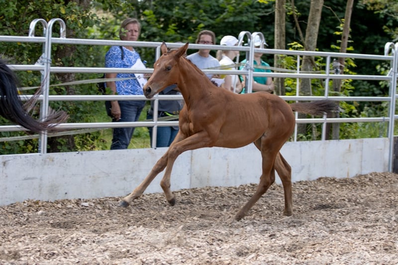 Puledro molto orientato all'uomo, molto apprezzato. Prezioso tirato con molta connessione di sangue, è altrettanto interessante per lo sport come lo è per l'allevamento! Curiosa e coraggiosa, sta aspettando il suo nuovo proprietario, che vuole renderla felice! Cresce nel fienile aperto della mandria e viene regolarmente sverminata e presentata al lavoratore dello zoccolo. Valutazione puledro 2021: Tipo 8.0 - Corpo 8.0 - Fondazione 8.0 / Passo 8.0 - Trotto 7.5 - Galoppo 8.5 / Impressione generale 8.0 = 56.0 punti