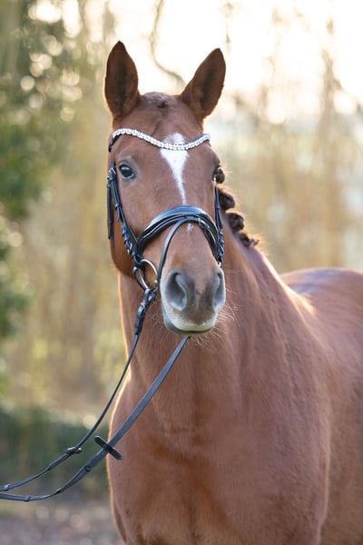 Awarded at the ZStE Hessen 2022 with a very good type, excellent riding horse attributes, and very good, responsive movements, Nachtzauberei was able to win the class for 4-year-old and older mares. The chestnut mare is out of the Herzruf daughter Nadja and possesses the highly sought-after double aptitude. She demonstrates impressive free jumping and remains focused when working over poles and cavaletti. She is also fearless in the field. Her movements are easy to sit, she moves with lightness in the frame, and responds delicately to subtle aids with a soft mouth. She successfully completed her mare performance test with an overall score of 7.45. Nachtzauberei’s sire is Zauberreigen. The athletic grey was reserve champion at his licensing and is now successful in show jumping up to M level and dressage up to S level. Nachtzauberei is the last daughter from our elite breeding Nadja. She has produced a total of 19 offspring, including 7 premium mares and a licensed stallion. Breeding-wise, Nachtzauberei is a true gem! Genetically, she offers all possibilities to produce offspring for every discipline of equestrian sport. Currently, she is lightly ridden and can be bred with your preferred stallion. A breeding lease is also possible (with her remaining in the possession of the lessee). Videos available upon request via WhatsApp.