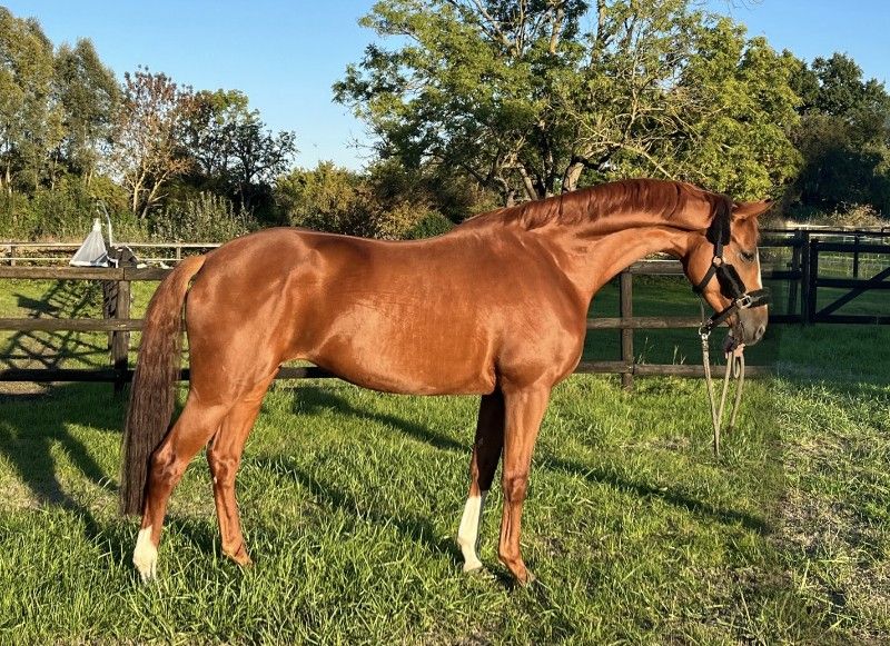 Schweren Herzens, muss ich mich aus gesundheitlichen Gründen, leider von dieser sehr lieben und talentierten Trakehner Stute trennen. Ich wünsche ihr einen Reiter der sie wirklich zu schätzen weiß und sie weiterhin fördert. Calea ist absolut KEIN Anfänger Pferd, sie braucht einen erfahrenen, geduldigen Reiter, mit einem gefestigten Sitz, aber auch sehr viel Einfühlungsvermögen,der in stressigen Situatioen immer wieder Ruhe reinbringt. Jemand der mit ihr im gesamten Umgang zwar konsequent bleibt, aber mit Ruhe und Verständnis reagiert und ihr mit seiner feinfühligen Art, Sicherheit vermittelt und somit auch ihr Vertrauen gewinnt! Dann ist mit diesem tollen Pferd alles möglich. Calea ist super weich in der Anlehnung, reagiert auf die kleinste Schenkel- und Körperbewegung von ihrem Reiter. Sie hat Temperament und auch ein gewisses Go,ist aber stets händelbar und sehr angenehm zu sitzen in ihren Grundgangarten. Sie hat an sich keine Unarten, lässt sich auch hervorragend Longieren und hört sehr gut auf Stimmsignale. Man kann Calea auch alleine Verladen. Beim Hufschmied sollte einfach darauf geachtet werden, das dieser einfach gelassen und ruhig arbeitet. Während des Beschlags, habe ich ihr immer eine Leckschale gereicht, damit war sie dann freudig beschäftigt. Sie wird auch nur vorne Beschlagen ,weil die Hinterhufe quasi zu kurz sind,bzw das Horn nicht lange genug wächst. Sie wird alle 6- 8 Wochen, vorne neu Beschlagen und hinten nur ausgeschnitten. Ich habe extra Schuhe für die hinter Hufe gekauft, diese sind auch nur für ins Gelände. Die Schuhe können gerne mit gegeben werden, sie sind noch Neu! Ein Manko hat Calea, (in ihrer Grundausbildung/ beim Anreiten, muss laut Züchter wohl was vorgefallen sein beim aufsteigen, was genau.... wusste er allerdings auch nicht) Calea ist beim aufsteigen sehr unsicher und hat Angst..... Allerdings, wurde das im täglichen Training immer besser und mit Vertrauen zum Reiter, wird das mit der Zeit dann auch ganz verschwinden. Zu Anfang ist es mit Sicherheit gut, wenn jemand Calea vorne an den Zügeln festhält, bis der Reiter aufgestiegen ist. Ein erfahrener Reiter der mindestens auf A/L Niveau reitet, sollte mit Calea aber keine Probleme haben. Das aufsteigen, sollte sich mit der Zeit und regelmäßigen Training auch sehr verbessern. Ich konnte bereits auch schon alleine bei ihr aufsteigen. Calea ist aktuell, seit über einem halben Jahr nicht mehr im Training. Das lag an mir selbst, ich habe eine Muskuläreerkranung, daher ist das aktuell nicht mehr möglich mit dem reiten. Sie ist von der Dressur mittlerweile auf einem guten E/A Niveau ausgebildet. Hat aber noch keine Tuniererfahrung. Sie kann aber zukünftig vielseitig eingesetzt/ ausgebildet werden. Sie macht gerne Bodenarbeit, Gelassenheitstraining, ist zur Jagd geeignet, sowie in den Kategorien Freizeitpferd oder Springpferd. Sie macht sich sehr gut im Freispringen, hat daran auch Spaß, aber in wie weit dort ihr Talent ausreicht müsste man Trainieren und ihr schonen vermitteln. Ich schätze mal mit entsprechender Ausbildung und Training, sollte sie es auch im Springen auf A/L Niveau schaffen mit der Zeit. Calea wird im Neuen Zuhause, auch wieder ein paar Monate im Training benötigen um auf Ihrem Niveau zu laufen und wird erstmal vertrauen zu ihrem neuen Reiter fassen müssen. Wäre meine Erkrankung nicht so schlimm geworden,würde ich sie aufkeinen Fall verkaufen. Calea ist super verträglich mit Stuten und Wallachen, kann auch als Puffer zwischen zwei Streitpferde.... gestellt werden ( bei Boxenhaltung). Sie geht überall mit hin, man kann Sie in einer Gruppe, als auch alleine ins Gelände reiten. Sie ist sehr Menschenbezogen und braucht Aufmerksamkeit, und sie sollte jeden Tag im Training sein.... ab und an natürlich auch mal ein paar Tage Pause,das merkt man bei ihr,wenn sie diese mal braucht. Eine Außenbox wo sie raus schauen kann, ist bestens geeignet für ihre Neugierde :) Für Ihre Ausgeschlichenheit sollte Calea im Sommer oder wenn es trocken ist so lange wie möglich auf die Weide, im Winter und bei Matsch und Regen empfiehlt sich täglich 1 Stunde in der Führmaschine.... zusätzlich zum reiten und/ oder longieren. In den letzten 3-4 Jahren war Calea nie krank und es gibt bisher auch keine Befunde. Ich habe aber auch keine AKU machen lassen, als ich sie vom Händler gekauft habe. Bilder, Videos, und Dokumente sind bei Interesse in der Anzeige einzusehen. Nördliches Saarland 7.9🥕🥕 VB