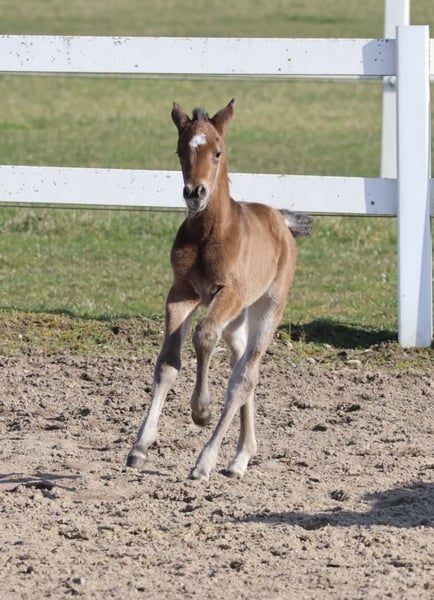 Eine sehr selbstbewusste junge Dame mit besten GGA steht hier zum Verkauf. Seltene und hochkarätige Abstammung mit sportlich geprüften Vorfahren. Vater Karlsson I ist Dressur und Springen L Platziert und in der VS hocherfolgreich bis *** gestartet. Mutter Bellevue vom S-erfolgreichen Gabun konnte die SLP auf Station als 2. beste absolvieren . Die kleine Maus kann gern bei uns besichtigt werden und könnte auch nach dem Absetzen zur weiteren Aufzucht verbleiben . Fotos. Julia Hipp/Knaack-Lindemann