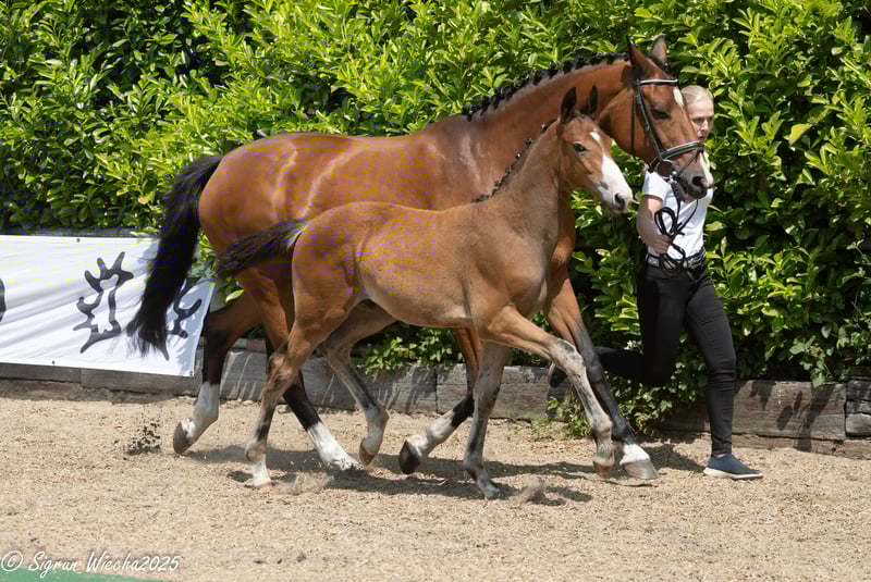 Sportiness at the highest level with international aspirations cannot be documented more emphatically than through this son of the world champion Grafenstolz TSF and grandson of the FEI Grand Prix winner Polarion TSF and the multiple course winner Hirtentanz. His son, born in March of this year, is thus a brother to Olympians and winners in the most challenging eventing championships in the world, such as Lexington, Burghley, Pau, or Badminton. Accordingly, this young talent from the best lineage presents himself as wiry, athletically impressive, and energetically focused on the tasks at hand. The mother has completed one of the best performance tests ever, naturally with dream scores for her jumping. She is connected to one of the few daughters of the elite stallion Parforce, who has personally proven his athletic performance in the course as well as that of his offspring. Additionally, with the third dam Holey Pasadena, we have a heroine in the S-level courses. She represents one of the best performance lines in the population; one of its most famous ambassadors is the great Habicht, who stands out as a representative focus.