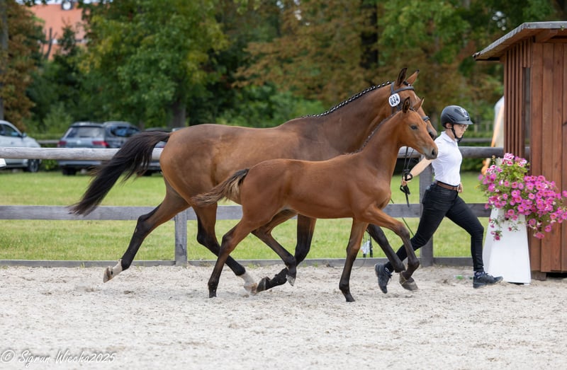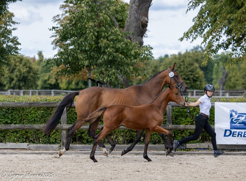 Bewegungsstark und sportiv gestaltet dieser Youngster jeden seiner Auftritte. Vor dem Hintergrund der offensichtlichen Spring- und Vielseitigkeitsgenetik ist die besondere Güte des Ablaufs im Trab und Galopp beachtenswert und dennoch ein Markenzeichen des Vaters Antritt. Der Muttervater Lossow, sowie die Hengste Solar und Sky Dancer im weiteren fallenden mütterlichen Stamm besitzen unter Leistungsgesichtspunkten hohe Attraktivität. Dieser Jüngling offenbart eindeutig Perspektiven für höhere züchterische und sportliche Weihen und konnte sich auf Grundlage seiner Grundqualität für das Fohlenchampionat des heimatlichen Zuchtbezirks empfehlen. Eine besondere Offerte, direkt vom Züchter.