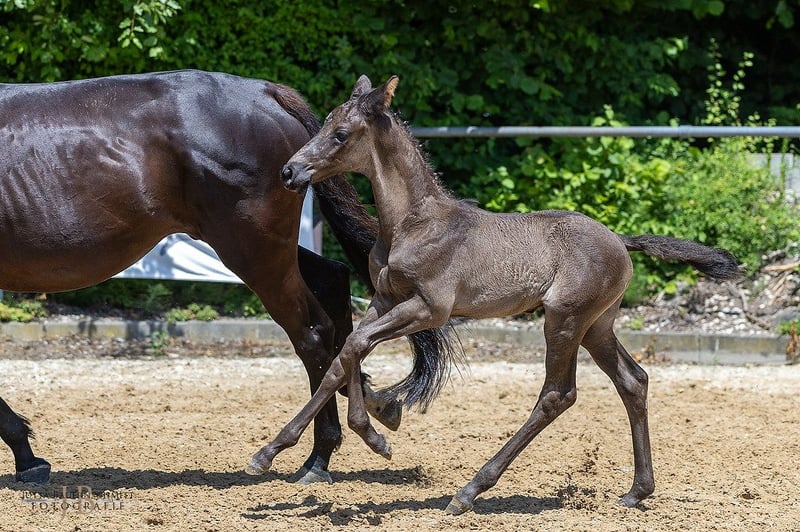 Light as a feather, always in rhythm, with diligence and impressive power development, this excellently developed son of Hirtenstern, born in May, steps onto the stage - in his nobility, body harmony with significant points, and unmistakable athleticism, he is an exemplary ambassador of his father's first crop, who has triumphed with top scores at his initial competitions according to his age. The lineage of the father sets the highest standards in terms of sporting versatility and is combined on the maternal side with the internationally celebrated Heuberger TSF and the performance-oriented Kasparow. Hohenstein in the background imparts valuable rideability characteristics. This son of Hirtenstern comes from a top breeding establishment, knows humans only from the pleasant side, is cared for and nurtured, and has learned the foal ABC with flying colors - a true charmer for high demands who simply wants to bring joy.