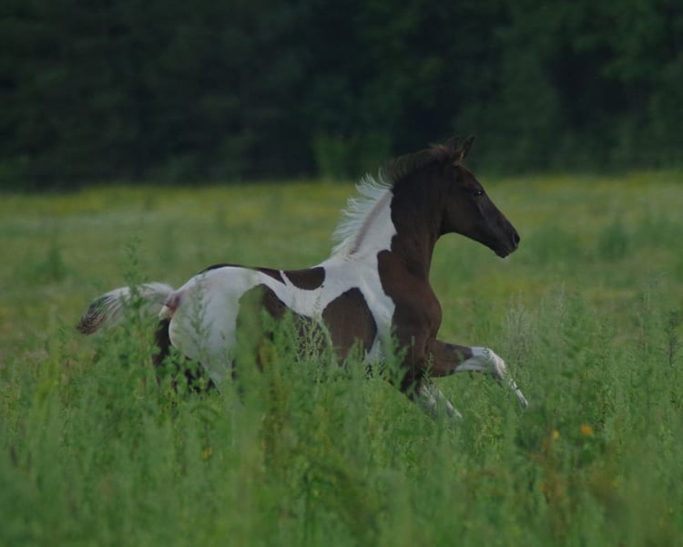 Bardzo elegancki, duży Trakehner HF w unikalnej, specjalnej maści Smokey Black tobiano – jedyny na świecie! Smokey Black oznacza, że nie jest zwykłym karetem, lecz nosi gen kremowy, przez co jest określany jako „Palomino Black”. To duży, silny źrebak z wspaniałymi ruchami; zdrowy, poprawny, bardzo bystry i spokojny. Ojciec, Honeybrook Chapman, urodzony w Wielkiej Brytanii, był uważany za jednego z najbardziej obiecujących synów Camaro. Sam Camaro był jednym z najbardziej udanych Tobiano Trakehnerów, z wieloma miejscami na podium do klasy M w konkursach wszechstronnych i skokowych. Brał również udział w Niemieckich Mistrzostwach Krajowych i dwukrotnie plasował się w czołówce. Matka ojca to pełnej krwi angielski ogier Goldmaker z RFF The Alchemist xx, a pramatka pochodzi z polskiej, wschodniopruskiej linii Trakehnera. Szacowana wysokość w kłębie około 175 cm. Posiada pełną dokumentację Trakehnera, stoi na małym stadnisku na Litwie, możliwy transport do Niemiec bez problemu. Dwa pełne rodzeństwa już zostały sprowadzone do Niemiec.