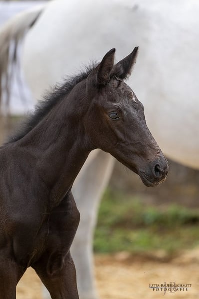 Se vende un potro de capa negra muy enérgico, hijo de Janov (EH Heuberger/Normativ ox) y de Kreta (EH Connery/Lehndorff's). En su evaluación de potros, este joven típico ya destacó y recibió un total de 57,5 puntos del entonces juez Lars Gehrmann. Actualmente, está creciendo en una cría profesional de sementales con compañeros de la misma edad en el grupo. El padre Janov ha tenido éxito hasta el nivel de doma S**; su madre ha demostrado éxitos en D/S/G hasta la categoría L. Este joven seguramente brillará más tarde en la pista de doma. Los hermanos por parte paterna ya han tenido éxito en competiciones. Venta directamente del criador. https://trakehnerzucht-renate-steiner.de/konrad-s/ Imágenes y video actuales de finales de junio de 2025.