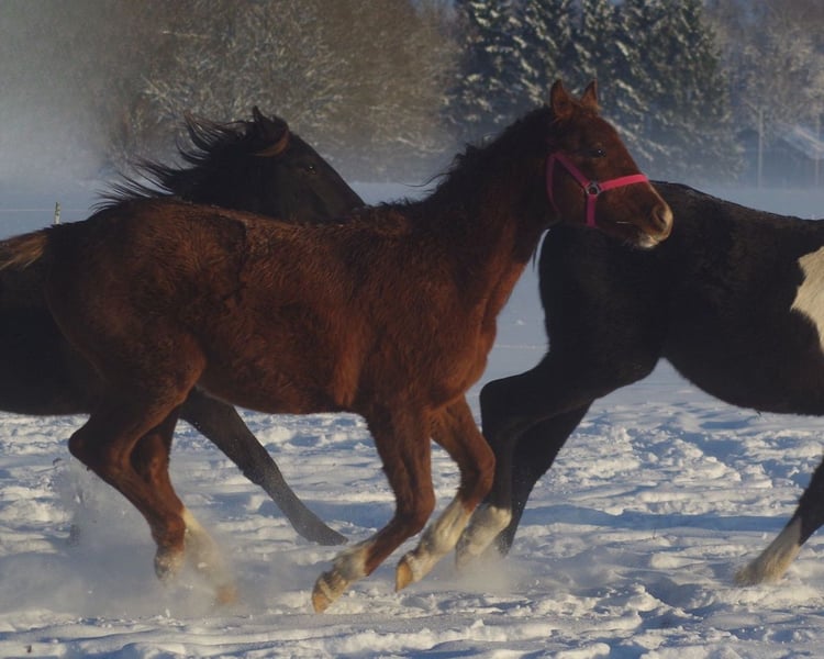 Bildschönes Trakehner Junghengst (G. Juni 2024) mit traumhafter russischer Springabstammung. Vater Kiparis (145 cm GP springen, aus Belorussische Dovator Gestüt), Vatervater Pavilion (150 cm GP springen, Dovator Gestüt), Muttervater Preston (150 cm GP springen, aus Estland, mütterliche Halbbruder zu andere GP springer Peron). Steht in Estland, direkt vom Züchter- kann problemlos nach Deutschland gebracht werden, die Kosten belaufen sich auf ca. 600-800 Euro. Wir haben über 20 Fohlen nach Deutschland verkauft, einschließlich Vollschwester. https://www.youtube.com/watch?v=PpamxA2W_Aw Vater: https://www.youtube.com/watch?v=maYxAXP_TFg https://www.youtube.com/watch?v=WGicXtroz10 https://sporthorse-data.com/pedigree/epikos-ka anneli.kadakas@gmail.com https://www.facebook.com/reinu.talu