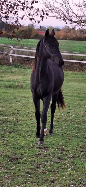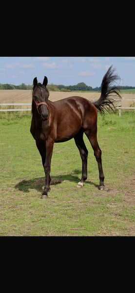 Young, growing stallion with excellent performance bloodlines, in a black-brown coat. Born on April 23, 2024, awarded 1c Premium Graditz. Pedigree and foal evaluation available in the photo. Raised in a herd in a stallion upbringing, never been ill or had any issues so far. Location: 17089. Transport possible at the buyer's expense, also to other European countries.