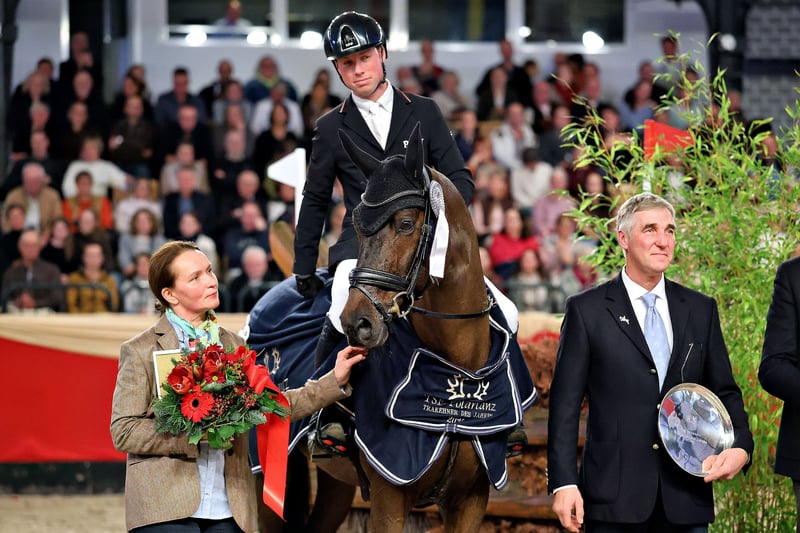 BLUE POLAR MOON è un puledro molto socievole, di grande carattere e affidabilità. Dispone di un passo molto buono, trotto espressivo e galoppo ampio e potente. La sua capacità e le maniere in salto sono ottime, anche se attualmente sta ricevendo un addestramento molto delicato, e si può prevedere un miglioramento nelle trotte libere e nel galoppo libero. Il giovane stallone è cresciuto in un branco molto equilibrato su grandi pascoli ed è un cavallo molto soddisfatto, con una buona visione d’insieme e carattere forte! È in buona salute, tranquillo in fase di carico e assolutamente mansueto dal maniscalco. Suo padre, TSF POLARTANZ, è stato eletto "Trakehner dell’anno 2025" grazie ai suoi eccellenti risultati fino a CCI4* S. Su 37 partecipazioni internazionali, con Felix Etzel ha ottenuto 22 vittorie e piazzamenti. Tre volte ha vinto il CCI4*-S. In tutta Europa, partecipando a prestigiosi concorsi, Polartanz è stato nominato "Miglior cavallo di Eventing Trakehner" per la terza volta nel 2025! La vittoria contro un campione olimpico nel CCI4*S al castello di Wiesbaden nel 2025 ha scritto la storia! Da ricordare anche il suo nonno, il WELTVERERBER HERALDIK xx. La sua madre, Bellissima, è l’unica figlia del cavallo da corsa Birkhofer Romanoff xx, che, grazie ai suoi grandi successi, è inserito nel registro dei Vollblüter di alto livello (Black Type). Ecco un aggiornamento degli ultimi mesi per chi si chiede perché non fosse presente in NMS… A fine agosto abbiamo deciso di prepararlo per il mercato degli stalloni. È stato sottoposto a radiografie alla fine di agosto. Con immagini molto positive, abbiamo iniziato un addestramento delicato, e lui ha risposto molto bene fin dall’inizio, sviluppandosi splendidamente. La sua tempra è eccezionale! Durante la preselezione ha superato tutti i criteri con ottimi risultati e ha già conquistato alcuni fan! Tuttavia, non potendo ancora competere con stalloni già in addestramento da diversi mesi, si è ipotizzata una possibile presentazione a fine febbraio. Il video e le foto pubblicati sono stati scattati all’inizio di ottobre. A metà febbraio pubblicheremo nuovi video, così si potrà osservare molto bene il suo sviluppo continuo. Non abbiamo preso in considerazione la selezione di primavera, poiché lì c’è troppo poca audience. Per qualsiasi domanda, siamo a disposizione. LUOGO: BOSAU, Schleswig-Holstein Le immagini e i video sotto la scheda si riferiscono al PADRE, TSF POLARTANZ, v. Konvoi – Heraldik xx – Habicht