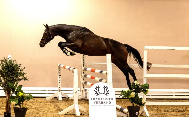 BLUE POLAR MOON is a very personable, highly promising young stallion. He possesses an excellent walk, an appealing trot, and a ground-covering canter. His jumping ability and manners are very good, and he is currently being trained very gently, with potential for further improvement in free jumping and free lungeing. The young stallion grew up in a well-established herd on large pastures and is a very content horse with good overview and character! He is healthy, desensitized to loading, and absolutely well-behaved at the blacksmith. His sire, TSF POLARTANZ, was named "Trakehner of the Year 2025" due to his outstanding results up to CCI4* S. Out of 37 international starts, he achieved 22 wins and placings with Felix Etzel. They won the CCI4*-S three times. Competing at renowned European events, Polartanz was named the "Best Trakehner Eventing Horse" for the third time in 2025! His victory over an Olympic champion in the CCI4*S at Schlosspark Wiesbaden in 2025 made history! Here, Polartanz’s grandsire, the WORLD-RENOWNED HERALDIK xx, sends his regards. His dam, Bellissima, is the only daughter of the Birkhofer thoroughbred Romanoff xx, who is listed as BLACK TYPE due to his significant successes among thoroughbreds. Here is an overview of the recent months for those interested in why he was not presented at NMS... In August, we decided at short notice to prepare him for the stallion market. He was x-rayed at the end of August. Equipped with excellent X-ray images, we began his gentle training. He has cooperated very well from the start and has developed splendidly. His temperament is outstanding! During the pre-selection, he met all criteria very well and confidently. He already had some fans! However, since he could not compete with stallions that had been in training for several months, a potential presentation at the end of February was considered. The video and photos posted are from early October. We will upload new videos by mid-February to show his development very clearly. We did not consider the spring licensing due to low audience numbers. Please feel free to contact us with any questions. LOCATION: BOSAU, Schleswig-Holstein The pictures and videos under the tab show the sire: TSF POLARTANZ by Konvoi - Heraldik xx - Habicht