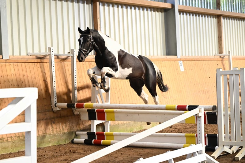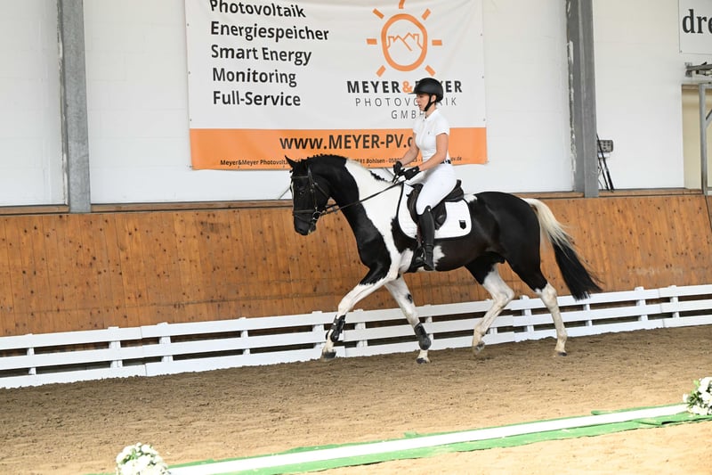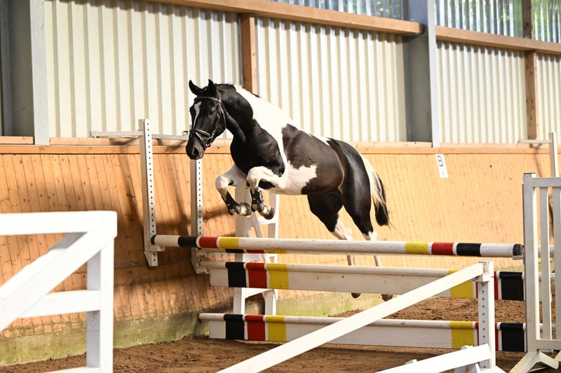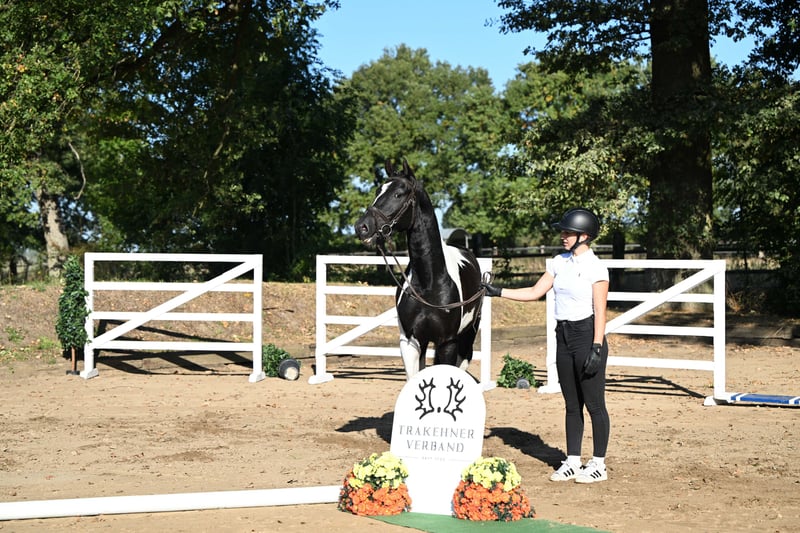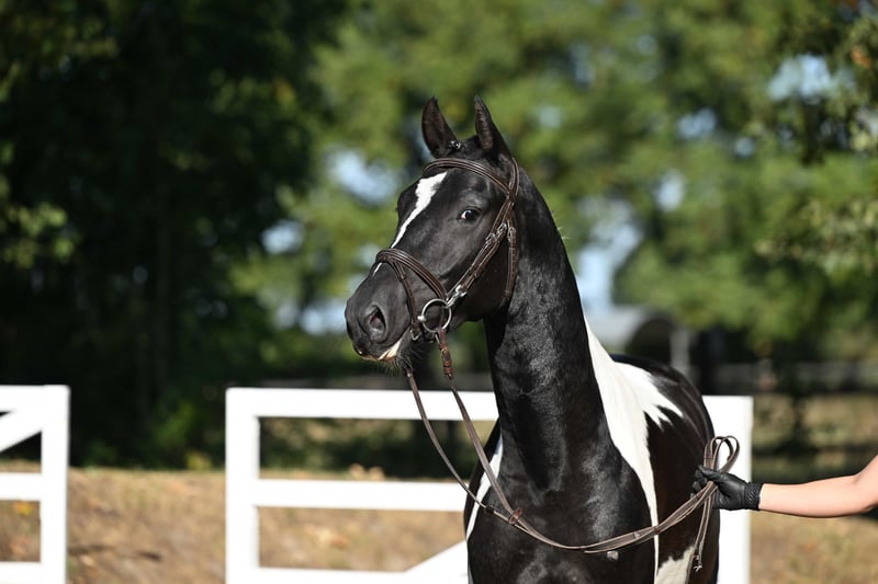 Ce puissant et compact cheval de type pie noir convainc par sa taille encore de 1,62 m et se présente comme un véritable cheval de sport avec un bel avenir. Agé de 3 ans, il provient directement du naisseur et séduit par sa clarté d’esprit, sa volonté de performer et son caractère équilibré. En daily handling, il se montre parfaitement docile, proche de l’homme et facile à vivre. Sous la selle, il travaille déjà en toute sécurité au pas, au trot et au galop, et impressionne par sa souplesse, son relâchement et son attitude de travail très agréable. Doté de bonnes allures de base, d’un joli saut et d’une forte volonté de coopérer, il possède toutes les qualités pour une carrière sportive polyvalente – que ce soit en saut d’obstacles, en dressage ou en extérieur. Un jeune étalon sincère, doté de cœur, de talent et de perspectives – prêt à démarrer avec son futur cavalier vers de nouveaux horizons. 💫 À céder directement du naisseur à des mains bienveillantes.