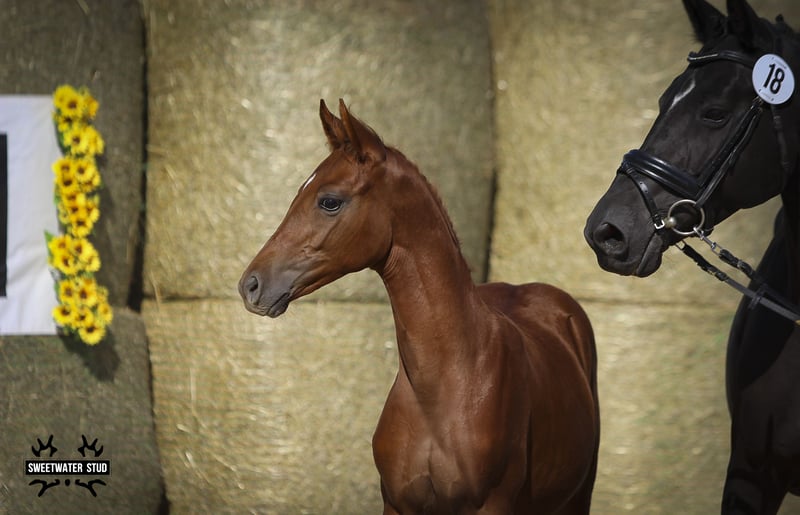 Le Légionnaire wurde mit 57,5 Punkten hochbewertet und führt alle klaren Attribute eines Hengstanwärters. Als Sohn des springgewaltigen Anglo-Arabers Prestige Kalone AA ist er zudem eine absolute sportliche wie züchterische Rarität. Die Mutter Loreena ist eine Tochter des Elitehengstes und Hengst des Jahres 2023, HIRTENTANZ. In ihrer noch jungen Zuchtlaufbahn stellt sie dieses Jahr den Köraspiranten und Katalog-Nr. 1 des diesjährigen Hengstmarktes LE PRESTIGEUX; einem Vollbruder zu diesem Fohlen hier. Loreena ist eine Tochter der bis L-Springen siegreichen Lilofee von Kasparow aus der Zucht von Elmar Ernst. Die Dritte Mutter Lara 11 von Giorgio Armani lieferte 5 Sportnachkommen in Springen und Vielseitigkeit. Stuten aus direkter Verwandtschaft findet man in den verschiedenen Leistungsstutbüchern. Familie unter anderem des S-Dressurpferdes Luan Ho von Vivus und des in schweren Springen erfolgreichen LORBASS von Lucado. Die Kombination seltener hochklassiger angloarabischer Leistungsgene über PRESTIGE KALONE auf der Vaterseite und sportlich abgesicherter Leistungsgene über die Elitehengste HIRTENTANZ und KASPAROW, aber auch Giorgio Armani, als Doppelvererber, lassen auf einen Köraspiranten für Neumünster 2027 hoffen. Stutenfamilie/mare line: O235A2 Lorelei - Jaeschke-Fresendorf Le Legionnaire wird auf der Sweetwater Stud Autumn Sale 2025 angeboten. Die Auktion läuft vom 12.11. bis 19.11.2025. Bid Up startet um 19:00 Uhr MEZ. Registrieren und mitbieten können Sie sich unter https://auction.sweetwater-stud.com/auctions