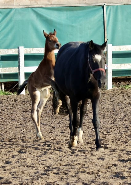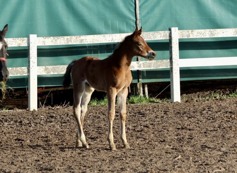 This is a stunning foal that will catch the eye of connoisseurs and enthusiasts of noble bloodlines. His sire is our impressive Arian Shah ox, who is also the sire of the licensed stallion Bahrain. His dam is the sport- and performance-tested Heartlight v. Ovaro. This colt impresses with his appearance, correctness, and movement. We would prefer to sell him to stallion breeders, as he is our only foal this year.