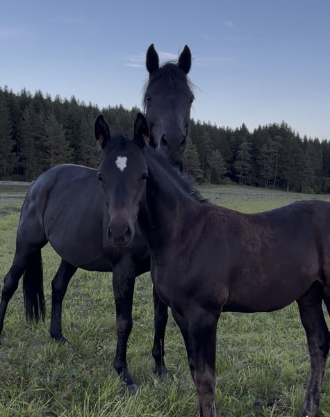 Zum Verkauf steht ein vielversprechendes Trakehner Hengstfohlen, geboren Ende Mai 2025. Dieser schwarzbraune Beau vereint Eleganz und Leistungsbereitschaft und ist sicherlich ideal für den Dressursport geeignet. - Rasse: Trakehner - Geschlecht: Hengst - Geburtsjahr: 2025 - Farbe: Schwarzbraun - Eignung: Dressur - Vater: MEGGLE's Kap Verde - Mutter: St.Pr. u. Pr.St. Donaublume Einer der ganz wenigen Nachkommen des ersten Jahrgangs von MEGGLE's Kap Verde. Kap Verde war strahlender Siegerhengst seiner Körung 2023 und überlegener Sieger seiner Hengstleistungsprüfung. Seine Vollschwester Koh-I-Noor war nicht nur Reservesiegerin bei der Auswahl zur Trakehner Jahressiegerstute, sondern auch die Stute mit der höchsten absolvierten SLP ihres Jahrgangs. Aus dem ersten Jahrgang des Kap Verde gibt es nur eine Handvoll Fohlen. Ein väterlicher Halbbruder dieses Fohlens wurde im Rahmen der Fohlenauktion in Kranichstein für 17.000 Euro an ein renommiertes Trakehner Gestüt zugeschlagen. Die doppelt-prämierte Donaublume war Siegerstute ihrer Eintragung in Schleswig-Holstein und brachte in den letzten Jahren zahlreiche Siegerfohlen. Sie stammt ab vom Hohenstein-Sohn Cousteau und der Elitestute Donaufürstin, die auch schon mit Deinheart einen gekörten Sohn und Reitpferdechampion in Schleswig-Holstein gestellt hat. Donaufürstin entstammt der Donaufamile des Klosterhof Medingen und ist eng verwandt mit dem Bundeschampion Damaschino. Das Fohlen wächst in artgerechter Haltung auf und kennt das Fohlen-ABC. Ein Absetzen kann ab Ende Oktober erfolgen. Standort ist Süddeutschland. Bei Interesse oder für weitere Informationen freuen wir uns über Ihre Nachricht!
