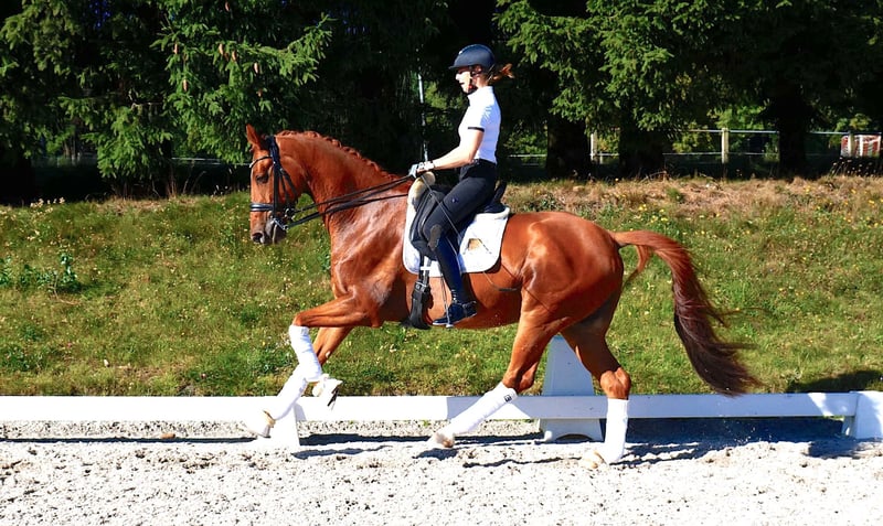 Elegant and very cooperative gelding with great potential. Perhaps easy to handle and comfortable to ride. Currently, I am successfully training him with a perspective for more. He is a treasure in handling, in the stable, and at competitions, bringing joy every day. A very special recommendation also for a junior or young rider. For further information and appointments for trial rides, please feel free to contact me by phone at 0172-5330585.