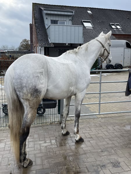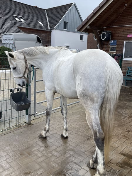 Trakehner Schimmel Wallach 12 Jahre 170 cm groß Avatar x Hirtentanz zu verkaufen. Er wurde regelmäßig auf Tunieren vorgestellt, verladen ist daher kein Problem. Sehr ausgelassen, ruhig und entspannt auch in neuer Umgebung. Er hat E und A Dressur, E Springen gewonnen, A Springen platziert. Im Gelände sehr brav, nicht schreckhaft, kennt Züge, Autos mit Hunden auch kein Problem. Als Freitzeitpferd super geeignet, ein echter Schmusebär. Steht in einem Offenstall mit einer Stute, einem Wallach und einem Shetty zusammen, früher auch in einer Paddockbox. Videos können gerne geschickt werden, gerne unter 01735776379 melden.