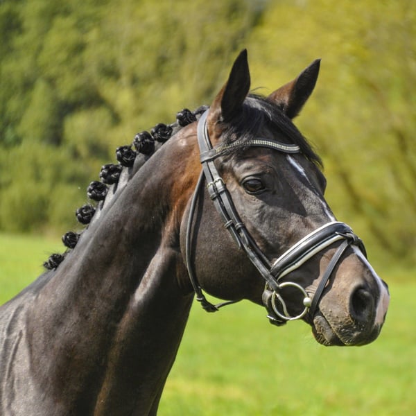 Pago Lu - The elegant dark bay gelding by Pago Go, Stockmass a perfect ladies horse with show experience! Pago Lu is an 11-year-old gelding with an impressive pedigree by Pago Go and a dam by Karon. He attracts everyone's attention with his elegant appearance. He has already been shown at competitions and has placed in elementary class, but has not yet been started in medium class due to a lack of time. This beautiful gelding is uncomplicated to handle and a real reliable partner. He has a solid level of training up to medium (M*) level and is therefore suitable for riders who already have experience and are looking for a new sporting challenge. Thanks to his potential and charisma, Pago Lu promises you exciting and successful times in competition and will be a reliable partner at your side. If you are interested in Pagluo Lu and would like more information or to make an appointment, please do not hesitate to contact us. We look forward to telling you more about this talented gelding and helping you share your next sporting success with him.