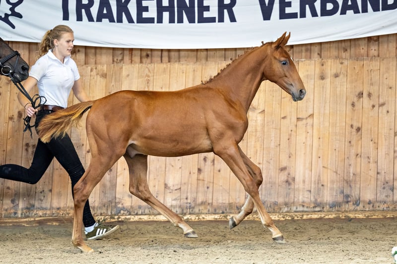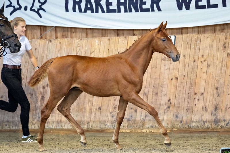 Dieser mittlerweile zweijährige Trakehner Wallach verfügt über eine exquisite Abstammung über die Hengste Belun – Grafenstolz – Lonely Boy xx und bringt damit beste Referenzen für eine große Karriere im Vielseitigkeits- und Springsport mit. Sein Vater Belun war einst bester Springhengst seiner Körung in Neumünster und wurde im vergangenen Jahr Springpferdechampion auf dem Trakehner Bundesturnier in Münster-Handorf. Mutters Vater Grafenstolz zählt seit vielen Jahren zu den Top 10 der Vielseitigkeitsvererber im WBFSH-Ranking und gilt als Leistungsvererber der Sonderklasse. In einer passionierten Trakehner Zuchtstätte geboren und aufgewachsen, präsentiert sich dieser menschenbezogene Wallach bereits sehr zugänglich. Erste Eindrücke in der Freispringreihe lassen ein großes Potenzial erkennen, von dem man sich jederzeit persönlich überzeugen kann. Aus naher Verwandtschaft (=gleiche Großmutter) wie der Bundeschampion Amazing Prince TSF und Isselhook’s Asaro. Verkauf auf Grund von Personalmangel deutlich unter Wert.