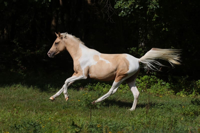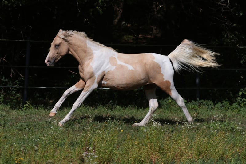 PRISET GÄLLER FÖR KASTRERING UPP TILL SENAST 3 ÅR GAMMAL!!! Lupinenhofs Spotify är en otroligt självsäker liten kille. Han är alltid där, är med överallt och måste utforska allt. Han lär sig snabbt och är lätt att övertyga. Han är absolut orädd och nyfiken. Visuellt är han ett riktigt blickfång. Inte bara hans sällsynta och speciella färg (palomino piebald, såvitt jag vet den enda i världen), utan också hans närvaro är mycket imponerande. Han är alltid där direkt när han ska visa upp sig och gör det mycket gärna. En sann showman. Hans härstamning är långt ifrån den gängse. Han har 73% arabiskt blod, och även om han är av arabiskt ursprung är han stark med en stabil och mycket korrekt grund. Hans farfar är Camaro. På grund av sin stamtavla, kvalitet och färg skulle han verkligen vara intressant för avel. Jag ser honom i uthållighets- eller eventingsektorn. Hans sluthöjd kommer att bli cirka 1,62 meter. Hans mor har sprungit distanser på upp till 61 kilometer. Hans mormor upp till 90 kilometer. Hans far är framgångsrik inom fälttävlan. Video tillgänglig, kan skickas på begäran. Spotify fick stanna länge hos sin mor och avvandes av henne. Han växte upp i en flock och bor i ett öppet stall. Han har 24/7/12 frisk luft, ljus och motion, utfodras med högkvalitativt foder och har alltid tillgång till hö. Självklart är han vaccinerad, regelbundet avmaskad och går till hovslagaren var 6-8:e vecka. Allt som allt en perfekt grund för ett långt och friskt hästliv. Eftersom bra uppfödning kostar pengar ökar priset med åldern.