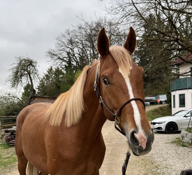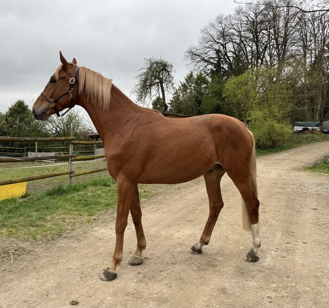 Han Solo Ist ein eleganter, wüchsiger, sehr Menschenbezogener Trakehner, mit einem Pedigree abseits vom Mainstream. (volles Papier und als Fohlen prämiert) Geboren 2023 Er ist brav im Umgang (führen, Schmied, Tierarzt) extrem Menschenbezogen hat aber auch viel Temperament und einen hohen Bewegungsdrang. Geht auch schon auf den Hänger und allein zur Bodenarbeit auf den Reitplatz! Aktuell ist er noch Hengst kann aber gelegt werden. Er ist immer für einen Spaß aufgelegt, sehr verspielt, sehr neugierig, nicht ängstlich Endmass voraussichtlich um die 1,70-1,75 Also Fohlen schon deutschlich im Hengstyp stehend wurde eine Aufzucht als Hengstanwärter empfohlen. Absolutes Outcross Pedigree! Vater: Karim Dore (Erfolgreich, rittig und mit hohen Reitpferdepoints ausgestattet!) Mutter: Hexes Hedgefonds ( hochinteressant im Blutanschluss- steht auch hier auf dem Gestüt und kann angeschaut werden) Wie auch seine Mutter verfügt er über ein ausgezeichnetes Fundament mit grossen Hufen, ist intelligent und sehr motiviert. Er hat einen hohen Bewegungsdrang und ist ein mutiges Pferd. Wie auch seine Eltern bringt er Talent für alle Disziplinen mit oder eben als ambitionieres Freizeitpferd für jede Sparte. Elastische, überdurchschnittliche aber relle Gänge mit ganz viel Schub aus der Hinterhand und ein grundsätzlicher Lerneifer machen ihn zum interessanten Nachwuchspferd. Hansi wächst auf unserem privaten Gestüt, behütet und liebevoll mit viel Menschenkontakt auf Bei uns wird täglich 2x gemistet (keine Matraze) 2x Kraftfutter (Lexa Bio, Equistro Mineralfutter) 24/7 Heu, alle 8 Wochen Schmied, 4x jährlich entwurmen. Wir legen auf eine Top Aufzucht in kleinen Gruppen den höchsten Wert. Wir wünschen uns für Hansi ein tolles Zuhause, idealerweise auf Lebenszeit. Wird nur wegen Zeitmangel schweren Herzens abgegeben.