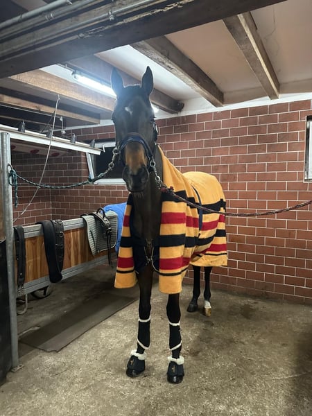 Don Friduren (Kros x Krokant) El Kros, exitoso en concursos de concurso completo a nivel CCI4*-S y en recorridos de salto, es considerado un embajador destacado de la cría de caballos deportivos de alto nivel de Trakehner de origen polaco. Aquí presenta a su hijo de gran estatura, bien proporcionado y con un salto excepcionalmente potente, procedente de una madre Krokant - Caprimond - Sokrates, de la línea A3A3 de la Donaufürstin del Klosterhof Medingen - Wahler. Esta línea transmite valiosas cualidades de doma, que también ha heredado Don Friduren. Se muestra completamente fácil durante el entrenamiento y siempre atento al jinete. La vencedora en recorridos internacionales, Donaumonarch, también pertenece a la familia materna. La madre, Donau Fee, fue distinguida en 2023 como la «Mejor yegua de 4 años del distrito de cría de Niedersachsen Nord-West/Bremen». Ya ha obtenido buenos resultados en la clase L y actualmente compite en nivel M.