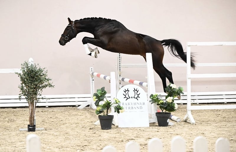 Duży, masywny ogier młodzieńczy Trakehner (2,5 roku) o imponującej prezencji i sportowych perspektywach. Obecnie ma około 173 cm w kłębie. Ten młody ogier zachwyca elastycznymi podstawowymi chody, pełnymi dynamizmu, rytmu i naturalnej równowagi. Już delikatnie lonżowany i chętnie skaczący przez przeszkody – zawsze czujny, uczciwy i z dużą orientacją. Matka Caitano, St.Pr.u.Pr.St. Chica od Herbstbach – Germanicus Rex, jest na etapie nadawania tytułu Elitarnej Klaczy Trakehner Verband. W 2014 roku zdobyła 1b nagrodę na krajowym pokazie klaczy skokowych oraz była rezerwową zwyciężczynią i najlepszą klaczą skokową w swojej kategorii. Jego ojciec Santo Scuro, już w wieku pięciu lat – jako najmłodszy ogier – został mianowany kandydatem do tytułu Elitarnego w Trakehner Verband. Wyróżnia się ujeżdżeniową wszechstronnością, mocnym charakterem, poprawną budową i doskonałym stanem zdrowia. W Stadl-Paura zdał 50-dniowy test z wyróżnieniem, uzyskując łącznie ocenę 8,48 jako najlepszy trzyletni ogier w swojej grupie. Szczególnie warto podkreślić jego oceny w ujeżdżeniu i ruchu (po 9,30), które podkreślają jego wyjątkowy charakter, wysoką chęć do pracy i predyspozycje sportowe. Na co dzień Caitano jest przyjazny, czuły i bardzo łatwy w obsłudze. Jest jasny w głowie, odważny i niezawodny, z doskonałym wychowaniem i zaufaniem do człowieka. Wychowany w zdrowych, odpowiednich warunkach, z codziennym wybiegiem i troskliwą opieką. Regularnie szczepiony, odrobaczany i prezentowany u kowala. Wyjątkowo sympatyczny młody ogier z doskonałymi predyspozycjami na przyszłość – prawdziwy partner na całe życie! Caitano z pewnością będzie kandydatem do wielkiego ringów. Dzięki swojej dużej galopadzie i dobrym skokom możemy go również bardzo dobrze wyobrazić w konkurencjach wszechstronnych. Przewiduje się, że Caitano zostanie wykastrowany na początku listopada. Zapraszamy na nasz profil na Instagramie Trakehnerhof_hegelerwald: https://www.instagram.com/trakehnerhof_hegelerwald?igsh=YXJtdHE4dndjMmU%3D&utm_source=qr i przekonaj się, jak wyglądał jego rozwój.