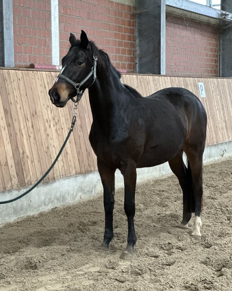 3-year-old gelding, currently approximately 16.1 hh. Very sweet and affectionate. He was backed in spring and spent the summer on pasture, so he is ready to resume work now. He is very calm and uncomplicated in everyday life. We can easily see him as a versatile all-rounder. He moves very elastically and also shows a lot of fun and talent in free jumping. Feel free to contact us to get to know the gelding personally.