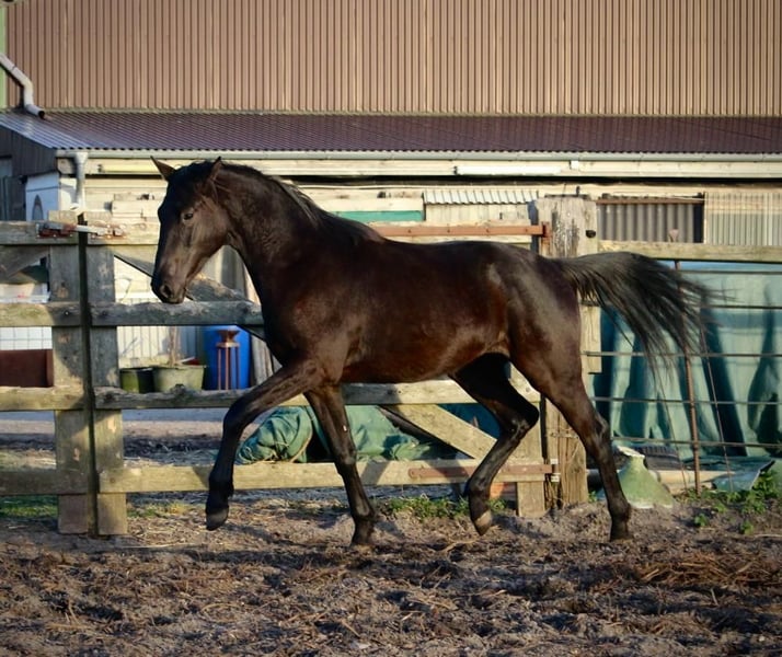 Giovane discendente di 2 anni dell'E.H. Helium, attualmente in allevamento ben curato sull'incantevole isola di Föhr. Già castrato, questo giovane ha un vero carattere d'oro ed è stato valutato molto bene come puledro con un punteggio totale di 56,5 punti, con particolare attenzione alle andature di base. Data l'età, è logicamente in pieno sviluppo e non è stato sfruttato, viene offerto direttamente dall'allevatore, semplice e maneggevole nella gestione quotidiana. Il padre, E.H. Helium, attualmente di successo nella S-Dressage con la sua istruttrice fissa Natalie Soujon, riesce regolarmente a attirare l'attenzione con i suoi discendenti molto ben addestrabili, che hanno trovato la loro vocazione nel mondo del dressage. Il padre materno Elvis, non solo per la sua colorazione come Pinto un vero colpo d'occhio, unisce il pedigree materno con il stallone di Grand Prix Saint Cloud, conferendo a questa linea un tocco di dressage speciale. Chi desidera assicurarsi un cavallo sportivo per il futuro dovrebbe prestare particolare attenzione a questa offerta.