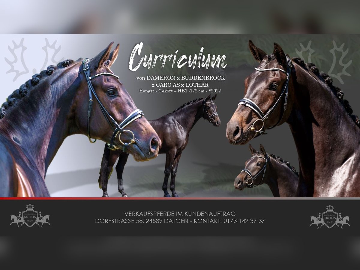 TYPICAL BRILLIANCE MEETS PERFORMANCE – APPROVED TRAKENNER STUD FARRIER (HB1) EMBODYING THE IDEAL OF TRAKENNER BREEDING ACCORDING TO THE MANUAL On behalf of the owner, we are offering a 172 cm tall, dark bay, 4-year-old approved and performance-tested (50-day / HB1) Trakehner movement artist for sale. He is sired by DAMERON out of a BUDDENBROCK x Caro As dam, and his pedigree promises great potential for Trakehner breeding and sport. He is currently in breeding use but can also be gelded upon request. Nomen est Omen – "CURRICULUM" (meaning "manual" or "textbook") lives up to his name – a Trakehner that exemplifies the attributes that have made the Trakehner breed the most noble in the world. Not only talented but also a true attraction for connoisseurs seeking nobility, strength, and intelligence in a dressage prospect. GENETICS: "CURRICULUM'S" pedigree is a statement of breeding foresight. Through his sire DAMERON and his dam’s sire & elite stallion BUDDENBROCK, he inherits top-level rideability and an interior of gold, fixed through line-breeding. With Caro As and Lothar in his lineage, he is genetically secured across generations for performance, a solid foundation, and refinement. NOBILITY & TYPE: His face, with large, intelligent eyes, and his masculine presence embody textbook Trakehner nobility and are a visual highlight in every arena. INTELLIGENCE & CHARACTER: "CURRICULUM" is a model student. With quick comprehension and unwavering loyalty, he is the ideal partner for high-level dressage. His charming character impresses with absolute caution and tenderness. He can be confidently groomed by a small child in the stable. He remains calm and shows loving attachment. ATHLETICISM: He is a textbook learner, demonstrating quick understanding, composure, willingness to perform, and excellent mechanics that will impress in the competition ring. With a solid foundation, good angulation, and an appealing side profile, he already responds well to rider aids. Since starting under professional saddle, he has been trained at Dressage Horse Level A and is ready for his first competitions. During his HLP, he performed confidently both in the arena and over jumps, adapting smoothly to unfamiliar riders. "CURRICULUM" is a top-class sport horse and a valuable breeding stallion for Trakehner breeding. The perfect answer for riders and breeders who refuse to compromise. He is the textbook embodiment of Trakehner breeding: noble, strong, and rideable. A stallion that delivers on his name. A current, comprehensive clinical and radiological examination (standard + neck + back) is available. "CURRICULUM" can also, after purchase, remain in our professional training program for further development and competition presentation.