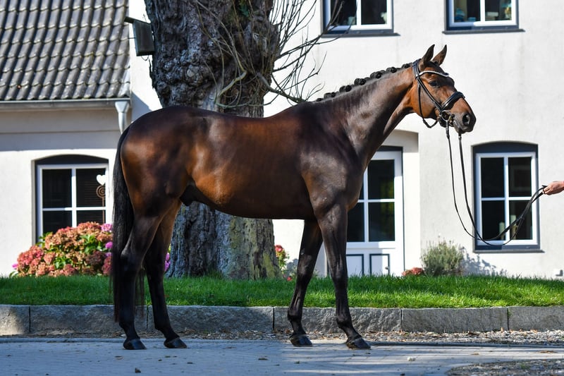 SANTINI to 2020 roku urodzony, krwiopochodny wałach trakeński i jeden z ostatnich synów elitarniego ogiera Hofrat. Również ze strony matki pochodzi z bardzo udanej rodziny sportowej: pełna siostra matki, St.Pr.u.Pr.St. Shannon Dream v. Couracius, była międzynarodową zwyciężczynią CCI3* pod Rebecca Gerold. SANTINI nie ustępuje jej i zachwyca dużym urokiem, wyrazistością i chęcią do pracy. Posiada trzy dobre podstawowe chody, przy czym szczególnie wyróżnia się jego mocny i ekspresyjny galop. Jest przy tym bardzo zmotywowany i ma wystarczająco dużo energii. Już jako młody koń prezentowany na pierwszych zawodach, w ujeżdżeniu pokazuje się pewnie, chętnie się uczy i zawsze ma pozytywne nastawienie do pracy. SANTINI jest sprzedawany z powodu choroby właściciela poniżej wartości za 9.500 € (do negocjacji) w sprawdzone ręce. Ze względu na swój zapał do pracy i wrażliwy charakter (bez złych nawyków, takich jak brykanie, wspinanie się czy uciekaniu), jest idealnym koniem dla pewnego siebie i ambitnego jeźdźca, który szuka dobrze jeżdżonego młodego konia z perspektywami. Kontakt: S. Petersen (właścicielka, hodowczyni i weterynarz) | 0173-6109226 L. Erichsen (aktualna jeździec) | 0174-2491719