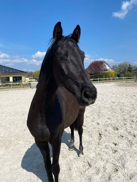 Picasso K. Ist ein vielversprechenden Trakehner Wallach, geboren im Jahr 2021. Der elegante Rappe besticht durch sein ansprechendes Exterieur und seine beeindruckende Größe von 170 cm. Mit seinem kräftigen Fundament und seinem ausgeglichenen Charakter ist er ideal für weitere Förderung seiner Ausbildung. Der junge Wallach ist bereits gut im Training. Seine Bewegungsqualität ist geprägt von Elastizität und Rhythmus. Durch seine freundliche Art und seine Lernbereitschaft ist er ein guter Partner. Dieser Wallach vereint alle Eigenschaften die es für eine weitere Ausbildung benötigt. Er ist gesund, regelmäßig gecheckt und frei von bekannten Krankheiten. Wenn Sie auf der Suche nach einem talentierten, gut erzogenen Pferd sind, das noch Entwicklungspotenzial besitzt, könnte dieser Trakehner Wallach genau das Richtige für Sie sein. Für weitere Informationen und eine Probereitstunde stehen wir Ihnen gerne zur Verfügung.