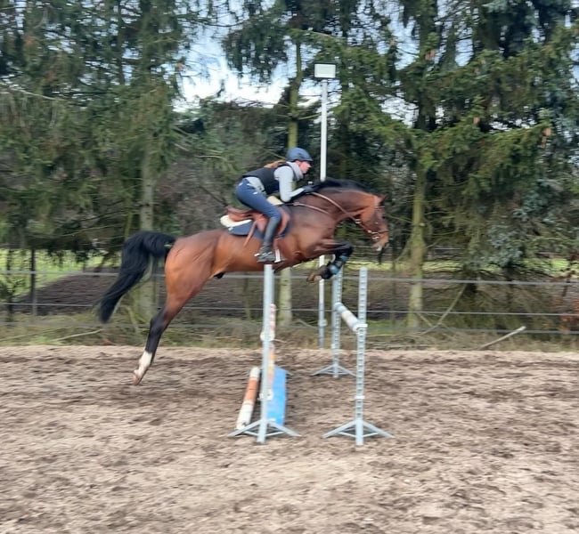 **Verkaufsanzeige: Trakehner Wallach** Zum Verkauf steht ein wunderschöner Trakehner Wallach, geboren im Jahr 2019. Mit einem Stockmaß von 167 cm ist er ein imposanter und eleganter Partner für vielseitige Aktivitäten. Dieser braune Wallach überzeugt durch seine ausgeglichene und freundliche Art. Er eignet sich hervorragend für die Vielseitigkeit und zeigt großes Potenzial in den Disziplinen Dressur, Springen und Gelände. Seine Bewegungen sind geschmeidig und kraftvoll, was ihn zu einem vielversprechenden Sportpferd macht. Der Wallach ist gut ausgebildet, brav im Umgang und zeigt sich stets motiviert und lernwillig. Er hat bereits erste Erfahrungen im Gelände gesammelt und ist sowohl alleine als auch in der Gruppe gut zu reiten. Er ist gesund, regelmäßig geimpft und entwurmt. Der Verkauf erfolgt in gute Hände, die ihm ein liebevolles Zuhause bieten können. Bei Interesse oder weiteren Fragen stehe ich Ihnen gerne zur Verfügung. Besuchen Sie uns und überzeugen Sie sich selbst von diesem tollen Pferd!