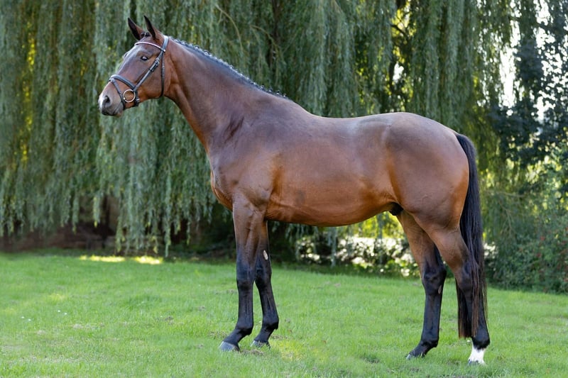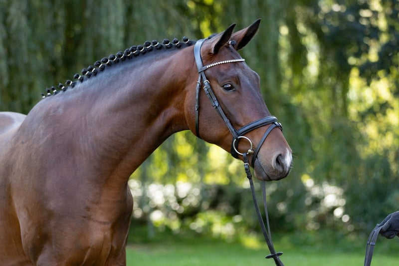 Grand modèle, avec un corps harmonieux et une ligne de dos élégante, notre Nachtgold se présente avec une stature équilibrée. Il possède une base solide et trois allures de très bonne qualité. Son pas est particulièrement ample et volontaire, le trot est rythmé et détendu, et le galop est équilibré et bien cadencé. Il maîtrise très bien son corps, ce qu’il démontre également en saut libre. Là, il fait preuve d’adresse et d’enthousiasme pour apprendre. Il reste motivé lors des exercices avec des cavallettis ! Nachtgold est curieux, amical et possède un tempérament calme. Son père, le quarter horse In Versuchung, connaît du succès en dressage en France. Sa mère, Nachschwalbe d’E.H. TAMBOUR, porte le titre d’Élite du Verband Trakehner en raison de sa descendance de qualité. Ses filles, Nachtruhe, Nachtamsel, Nachtlerche et Nachteule, sont toutes porteuses du label de mère prämien. Nachtgold est un compagnon, il souhaite plaire et fait toujours de son mieux. Grâce à sa facilité de mouvement et à sa taille, il convient aussi bien aux cavalières qu’aux cavaliers, mais aussi aux jeunes cavaliers souhaitant apprendre avec des jeunes chevaux. Nachtgold est doux, mais pas paresseux. Actuellement, il a été présenté en concours de dressage de niveau Classe A. Dans sa formation future, il maîtrise déjà le galop en extérieur et les figures de côté. Il allie un potentiel polyvalent à un caractère exceptionnel et est prêt pour de nouveaux défis !