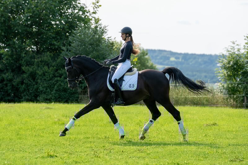 💎Jewel Thief💎 The 8-year-old Trakehner gelding "Jewel Thief" is seeking a new, supportive home. Jewel Thief is by Janov out of Insterburg TSF, and has three excellent basic gaits. He is very sensitive and pleasant to ride. Carefully backed and trained, he achieved several top placements in A**- and L-level dressage competitions last season. Currently, he is learning to meet the requirements of the M class. His willingness to learn and high rideability make him an easy horse to ride, and he also impresses with his beauty and presence. He also shows enthusiasm and talent over fences, although he has received little training in jumping so far. Our hope is that Jewel Thief will continue to be supported according to his potential. The gelding is located directly with his breeder in 95497. If interested, I look forward to hearing from you via message or phone at 0151-73037997.