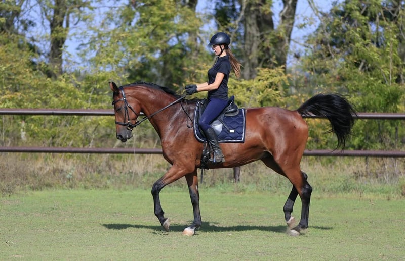 Santa Bernay 2017 • Mare • Oldenburg • Dressage prospect & Broodmare Beautiful bay mare with elegant type and strong presence. Santa Bernay has harmonious conformation, expressive movement, and a calm, cooperative temperament. She shows rhythm, balance, and elasticity in all three gaits, making her a promising partner for both sport and breeding. Pedigree: Bernay — Tarbagan. Price: €13,000 Export possible.