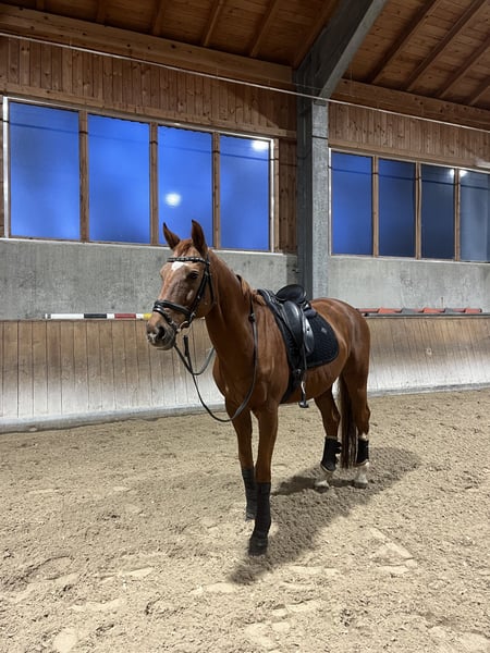Chitano lässt sich durch nichts aus der Ruhe bringen. Unsere 3 Kinder (bis 16 Jahre) sind auf ihm täglich geritten seit sie 8 Jahre sind. Er steht nun zum Verkauf, da die Kinder sich reiterlich weiterentwickelt haben oder ins Ausland gehen. Der Fuchs ins gesundheitlich sehr robust, ekzemfrei, rundum geimpft, Zähne einwandfrei. Er liebt das freie Gelände, die Halle und den Sandplatz ebenso. Chitano ist ein sicheres, verlässliches Pferd auf A-Niveau - super brav im Umgang und bestens geeignet sich reiterlich weiterzuentwickeln. Wir suchen für ihn ein neues Zuhause, indem er viel Aufmerksamkeit bekommt.