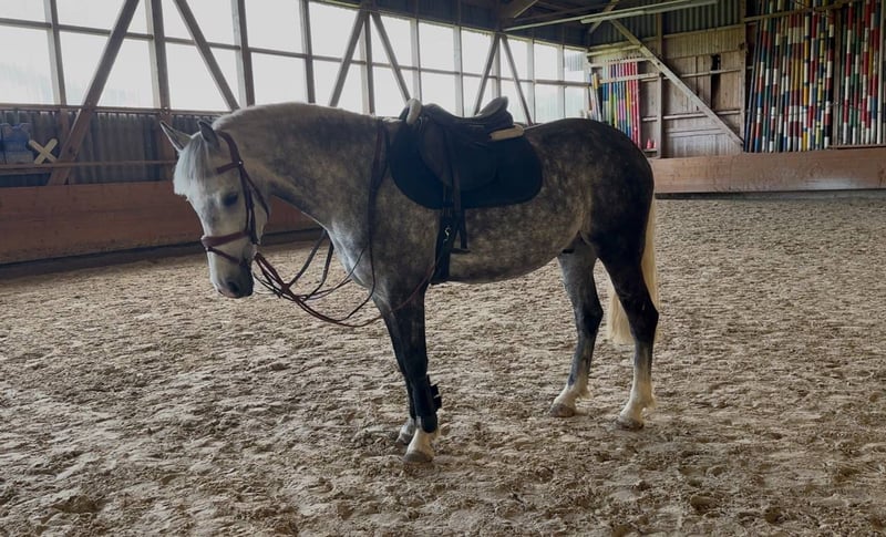 Zum Verkauf steht ein Top-Springpony, ein Schimmel-Wallach mit einem großen Herz und viel Vermögen, geboren 2018, mit einem Stockmaß von 149 cm. Ideal passend für Kinder, die das Springreiten auf sichere Weise kennenlernen möchten, sowie für ambitionierte Reiter, die ein zuverlässiges und talentiertes Pony mit Perspektive auf höhere Parcours suchen. Mit Reiter bis 140 cm gesprungen, verzeiht Fehler, springt alles, sehr bequeme Gangarten, einfach im Umgang, keine schlechten Angewohnheiten, geländefromm, extrem freundlich und lernwillig. Röntgenbilder aus 2025 vorhanden – sauber. Bei Interesse stehe ich gerne für weitere Informationen und eine Besichtigung zur Verfügung.