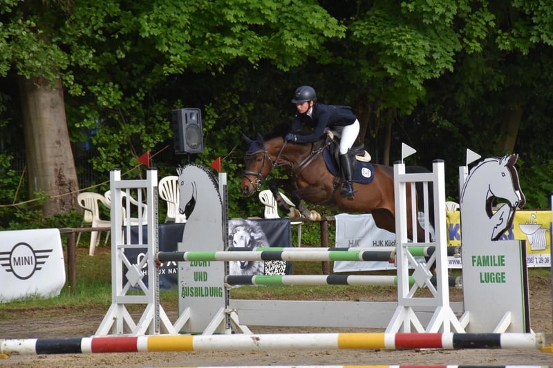 Beautiful little show jumping horse with potential for sale. For sale is a talented Westphalian mare, born in 2015. She presents herself in an elegant dark brown coat and stands at 156 cm. She is well-mannered and easy to ride both on the ground and under saddle, with a spirited temperament. Her friendly and open nature makes her an ideal partner for riders who enjoy show jumping and wish to further develop their skills. The mare is regularly vaccinated and dewormed. She is versatile and can be used both in the field and in the arena, having gained experience at competitions. If you are interested or have any further questions, please feel free to contact me. Viewings are possible by appointment. We look forward to hearing from you!