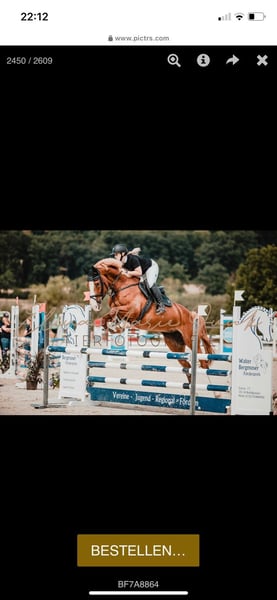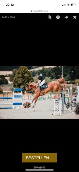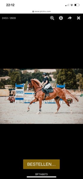 Verkaufen bildschöne Fuchs Stute namens Adelheid, geb. 2016 , ca. 171 groß. Vater: All Music, v Arpeggio Mutter: v. Hogwart. Sie ist Springpferde A** platziert, aktuell aber nur Freizeitmässig Dressur/ Springen geritten (aufgrund von Aufgabe des Turniersports). Sie ist unverbraucht und top fit. Sie springt sehr gerne und hat sehr viel Vermögen am Sprung. Mit ein paar Trainingsrunden ist sie hier sicherlich wieder schnell im Turniergeschehen drin. Sie ist sehr verschmust, beim reiten benötigt Sie jedoch eine konsequente, erfahrene Reiterhand, da sie auch mal stutig sein kann. Sie hat ein sehr gutes Exterieur. Sie hat ein angenehmes GO und ist leicht in der Anlehnung. Kein Kinderpferd, aber für einen guten Fortgeschrittenen Reiter, ein Pferd was Spaß macht. Wir haben Sie als Absetzer von der Züchterin gekauft. Von Amateur geritten und sehr gut ausgebildet. Bitte nur bei ernsthaften Interesse melden, Adelheid steht zum Verkauf und wird nicht zur Verfügung gestellt! Auf Anfrage sende ich gerne Videos. Sie wird aufgrund von Zeitmangel und Aufgabe des Turniersports abgegeben. Aktuelle Parcours Trainingsvideos vorhanden