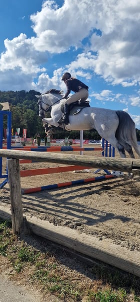 Verkaufe elegante Westfale-Stute – Schimmel, geboren 2016 Zum Verkauf steht eine wunderschöne Westfale-Stute, die durch ihr edles Erscheinungsbild und ihre vielseitigen Fähigkeiten besticht. Geboren im Jahr 2016, vereint sie Kraft, Eleganz und Springvermögen in perfekter Harmonie. Sie ist bestens geeignet für den Springreitsport und zeigt bereits viel Talent und Begeisterung für das Springen. Die Stute ist gesund, gut ausgebildet und hat ein freundliches Wesen. Sie ist sowohl für erfahrene Reiter als auch für ambitionierte Nachwuchsreiter geeignetich selbst bin die Stute nie höher als 1,15 geritten ( R1) , da ich erst seid 5 Jahre Springreite, ein Bereiter ist sie aber schon lockere 1,25 Runden geritten und sie hat gezeigt das Luft nach oben ist... Bei Interesse oder für weitere Informationen stehe ich gerne zur Verfügung. Überzeugen Sie sich selbst von diesem besonderen Pferd!