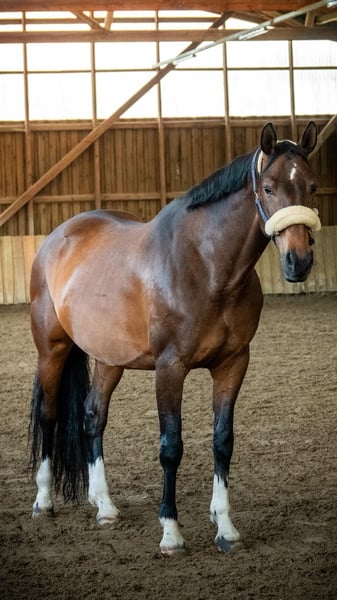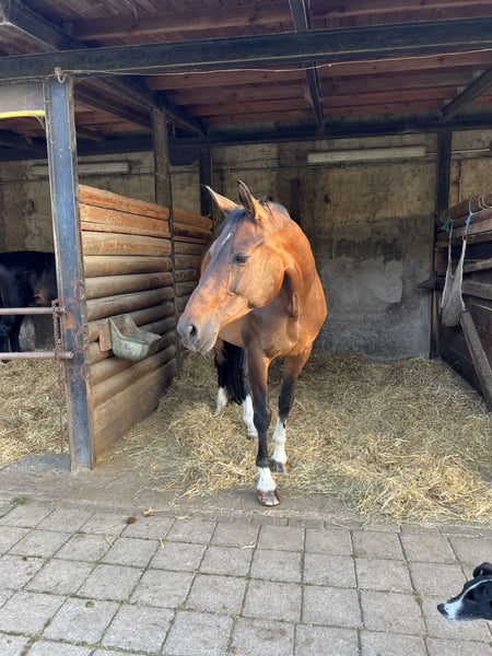 I hereby offer my wonderful 11-year-old Westphalian mare for sale. She is looking for her "forever" home. Lou is an almost perfect mare by Everdale x Flavio and impresses with her high willingness to perform time and again. Once she has found her perfect rider, she will do everything to please them. So far, she has competed in 2 tournaments and can certainly be used as a competition horse if given the necessary time. She is NOT a beginner's horse. She has a lot of go, which sometimes makes her a bit eager and can lead to frustration, making her not the easiest to ride. Although she is bred purely for dressage, she also loves jumping. I have encouraged her a bit in free jumping, but under saddle, she has only jumped cavalettis so far. However, she really enjoys jumping. In 2023, she had a beautiful filly, which was born without any problems. She is a super uncomplicated mother. In general handling, she is very easy as long as she trusts the person. She is NOT a weight carrier. Lou has a condition, which is why I must, with a heavy heart, part with her for her well-being. Home before price! Please only serious inquiries.