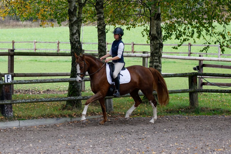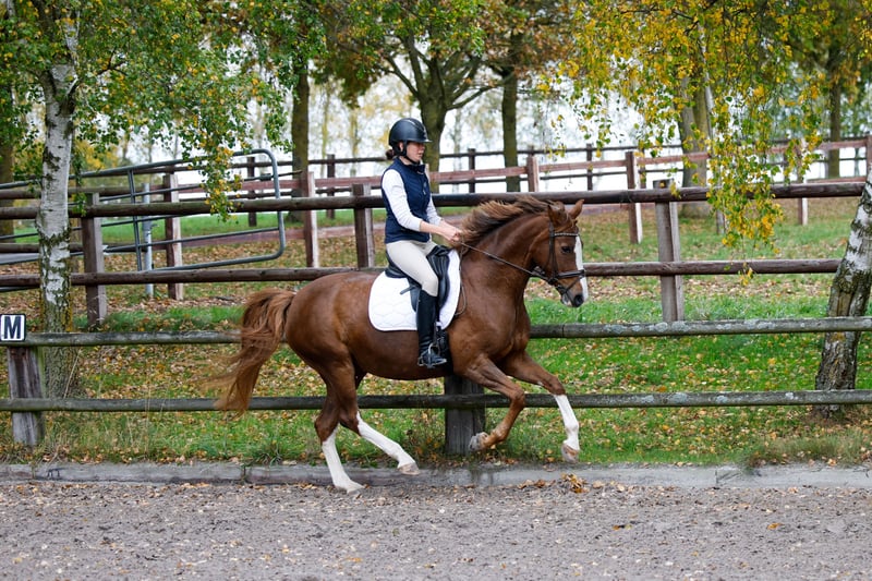 Eine bildhübsche, brave Stute, die ihrem Reiter stets gefallen möchte. Sie überzeugt mit Intelligenz, angenehmem Temperament und einem ausgesprochen bequemen, leichtrittigen Bewegungsablauf. Aus Zeitmangel wird sie schweren Herzens abgegeben – sie ist einfach zu schade, um nur herumzustehen. Diese Stute möchte arbeiten, gefördert werden und ihrem Menschen Freude bereiten. Eine ideale Partnerin für jemanden, der ein zuverlässiges Reitpferd sucht und zugleich den züchterischen Wert zu schätzen weiß.