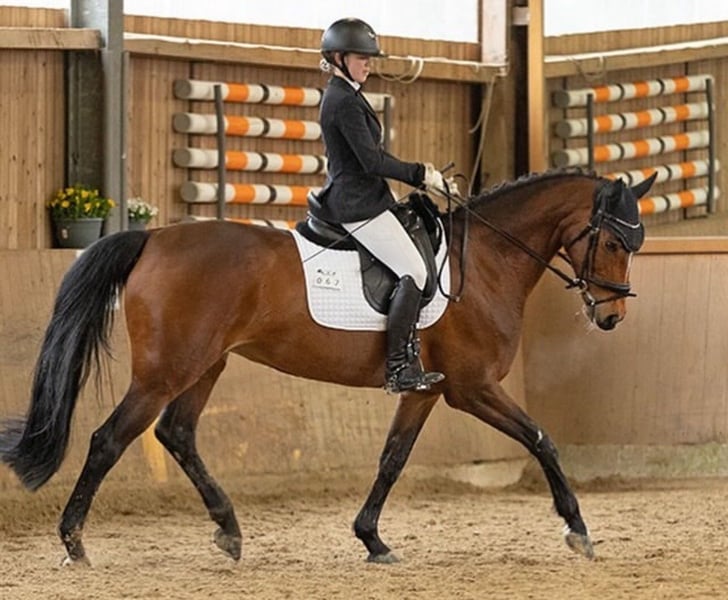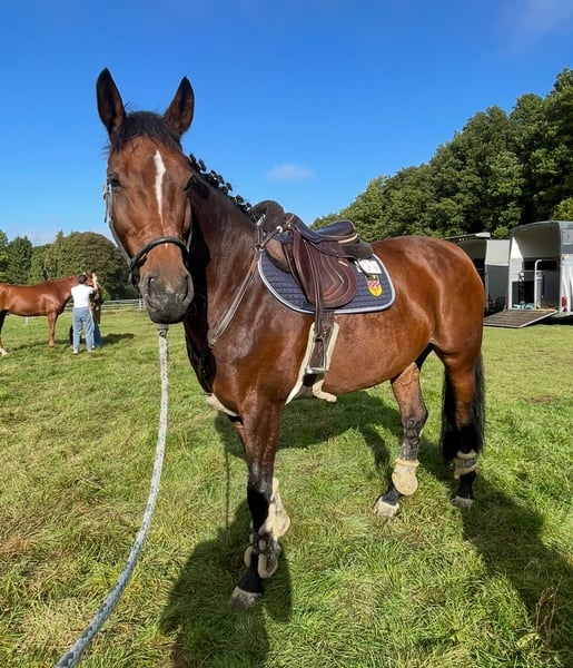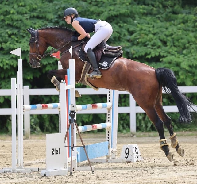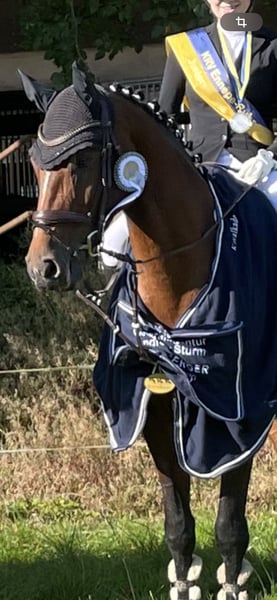 With a heavy heart, I am parting with my 12-year-old mare Conchi, a life partner with great potential. Conchi has been with me for over three and a half years and during this time, she has not only been a fantastic sport horse but also a true heart horse and a reliable companion. Together, we have celebrated many successes; she has reliably carried me from show jumping competitions to placements in the L class. In the course, she feels completely in her element and has already won several M class competitions (with potential for more). In dressage, Conchi is ambitious and shows herself to be rideable, achieving nice placements up to the A class. Furthermore, she has also impressed in eventing: at the national finals in Hanover, she achieved scores of up to 8.0. This year, she has already participated multiple times in cross-country training. Additionally, she won the junior championship of our local riding association. She has many other successes, such as eighth place at the Westfalen 8 tournament. Conchi is in perfect health, has never been injured or sick during her time with us, and is in very good training and overall condition. She is easy to load, uncomplicated in everyday life, and shows absolute composure and routine at competitions. In jumping, she impresses with a good work ethic, an ideal base tempo, and a pronounced ability. You can tell that she practices this discipline with passion. Conchi comes from a performance-tested Westphalian lineage and is registered with the Westphalian Horse Studbook e.V. For her, we wish for a home where she will continue to be challenged and bring as much joy to her new person as she has brought to me over the past years. She is suitable both as a junior horse for ambitious young riders and as a reliable partner for youth or younger children who want to enter the competition sport. A trial ride is possible by arrangement. However, we kindly ask that this is only taken up with serious interest.